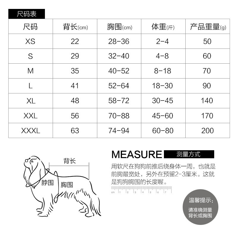 1,采用的是莫代尔的面料,弹性的设计,透气轻盈,穿在狗狗身上不勒身。