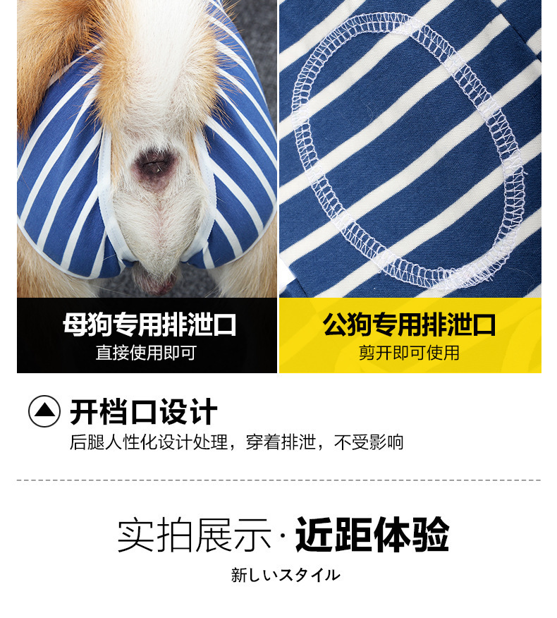 3,开档口的设计,便于母狗排泄,公狗可在排泄口位置剪开即可
