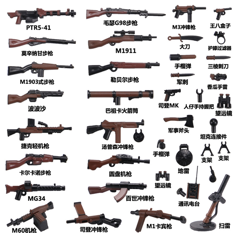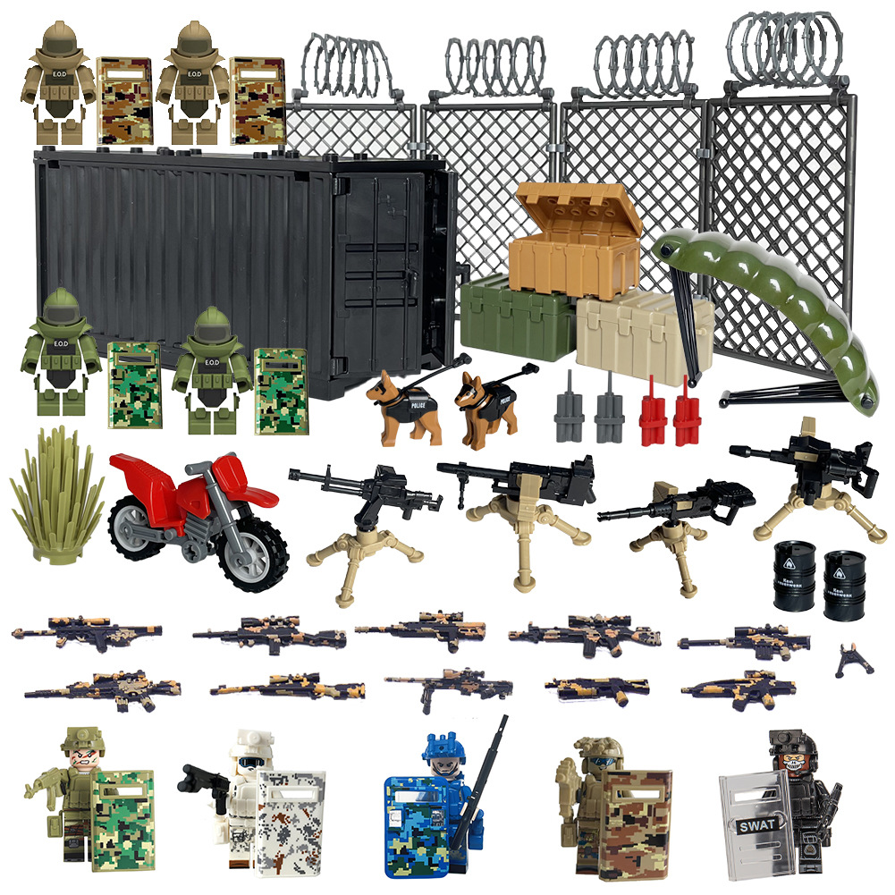 건물 블록 인형 군사 무기 낙하산 방패 오토바이 무기 상자 로드블록 2 색 총 잔디 빌딩 블록 장난감