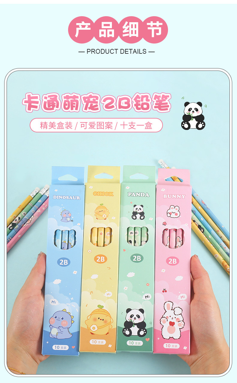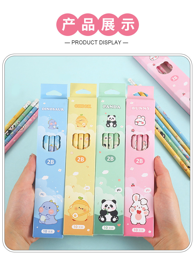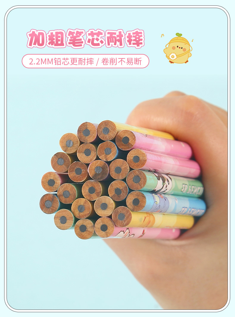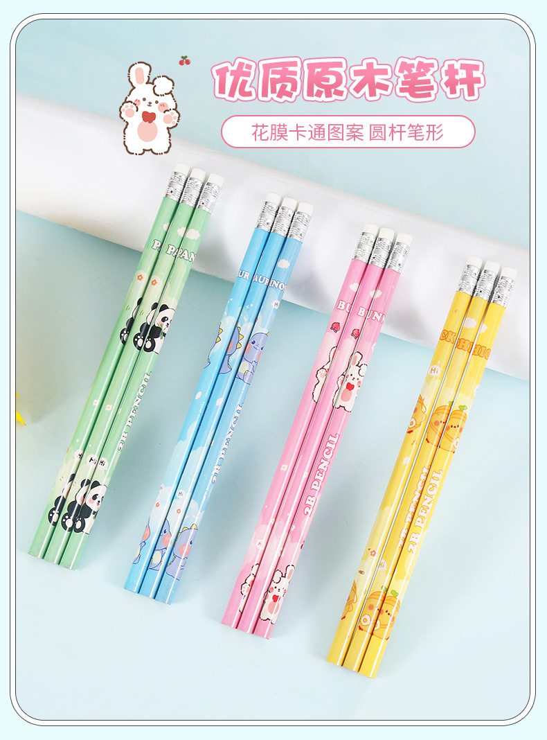 어린이 만화 연필 2B 연필 지우개 머리 둥근 막대 초등학생 문구 도매 학습