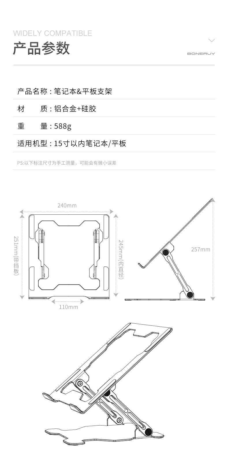 알루미늄 합금 컴퓨터 브래킷 데스크탑 사무실 노트북 접이식 열 분산 휴대용 태블릿 조정 가능한 높은베이스