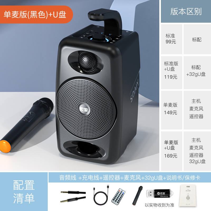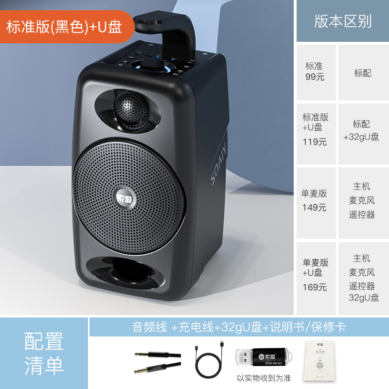 • 단일 밀 버전(검은색) + 32g USB 플래시 드라이브 [노래를 대체할 수 있음]