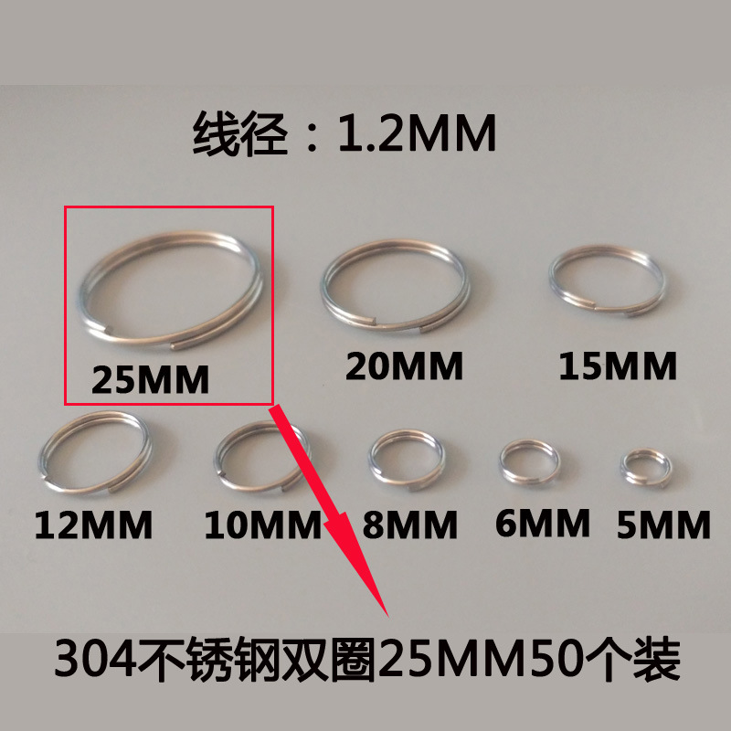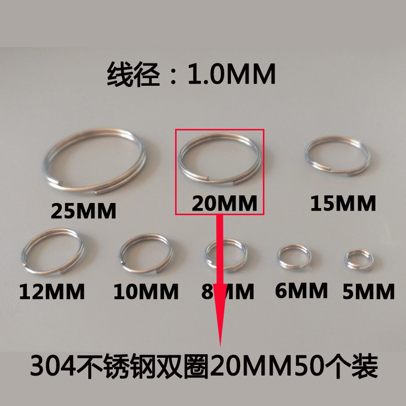 • 외경 15mm, 304 스테인레스 스틸 이중 링, 50개 팩, 새끼 손가락 두께 정도