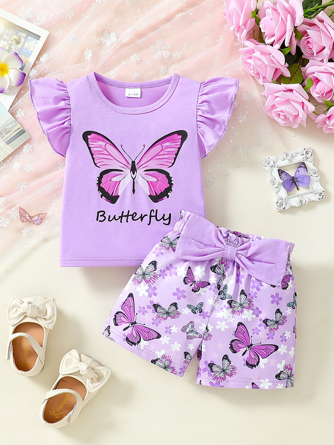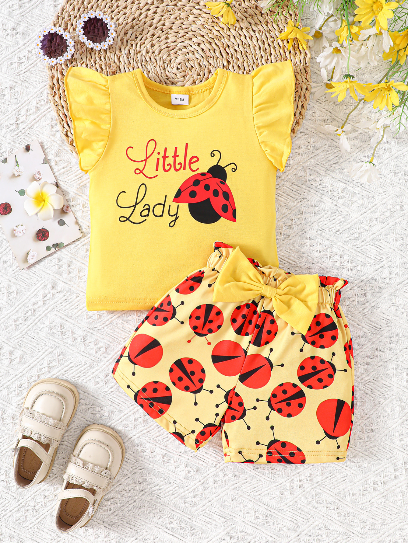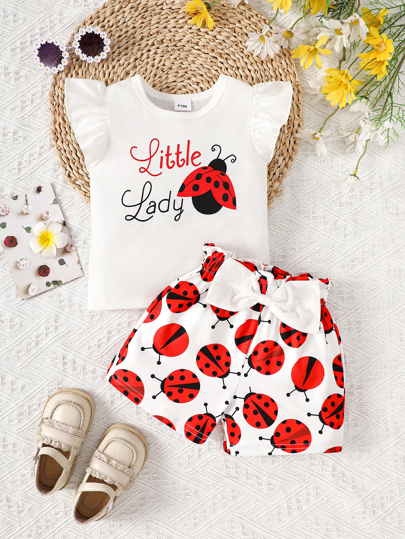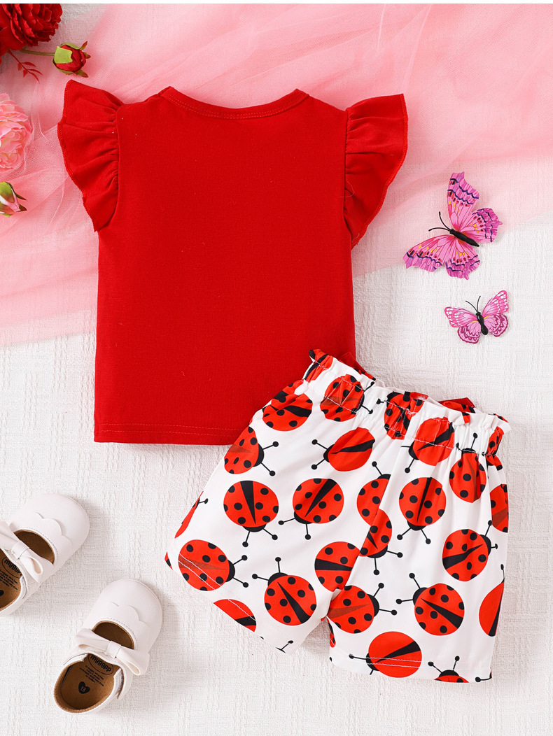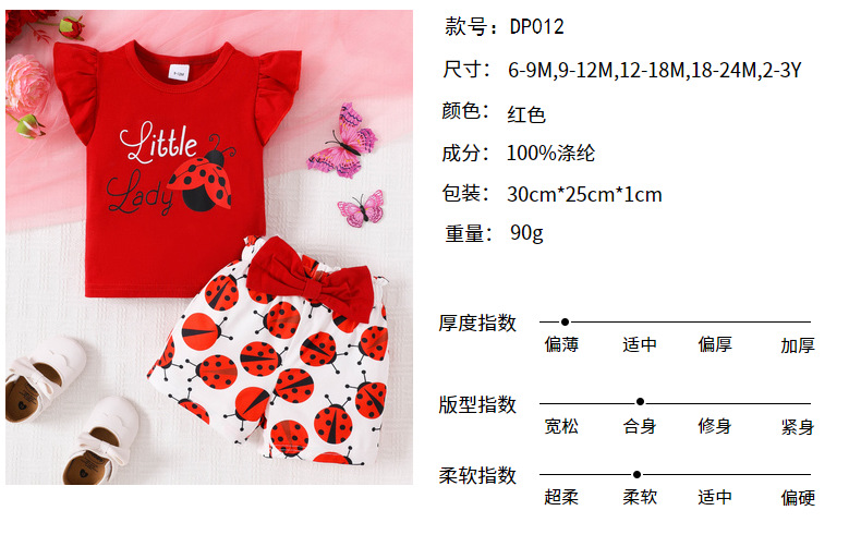 여아 여름 크로스보더 탑, 영문 프린트 반바지, 곤충 프린트 신생아 민소매 슈트, 유아 아동복스토어 가기