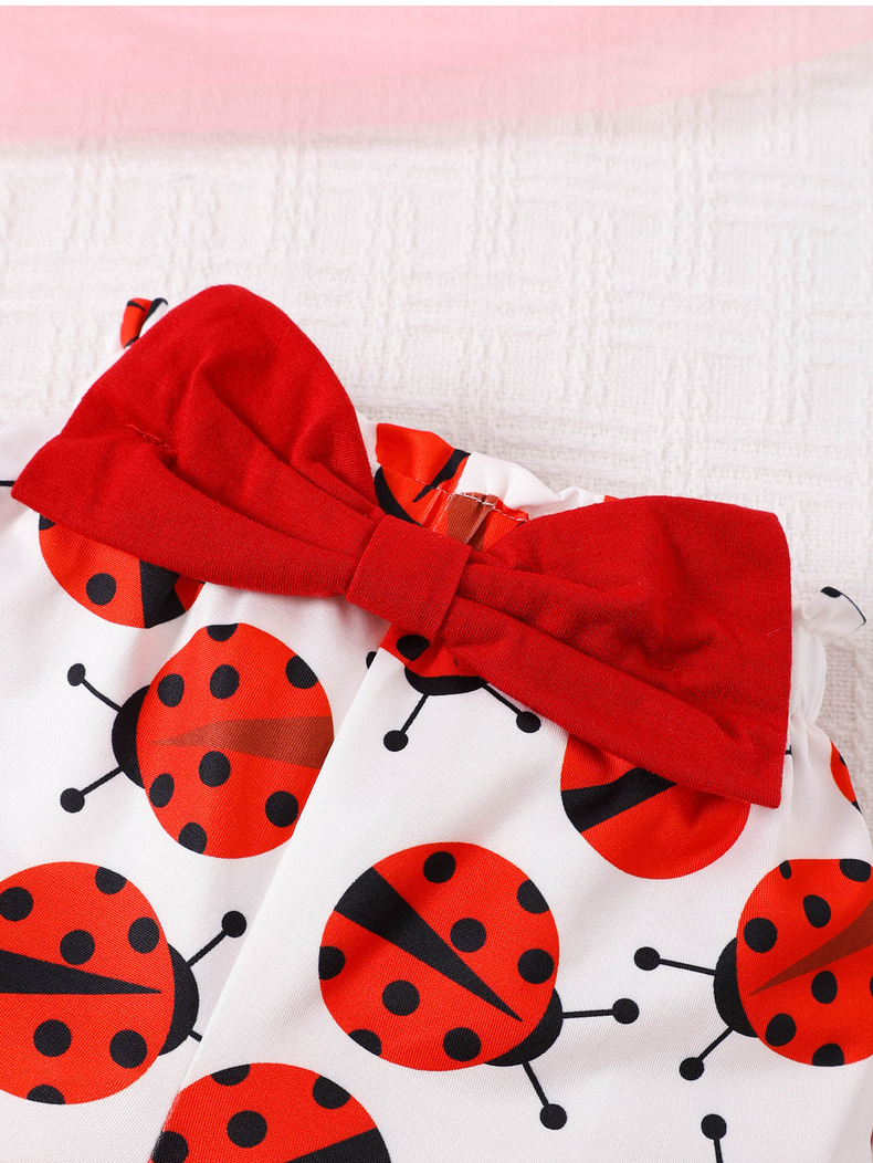 여아 여름 크로스보더 탑, 영문 프린트 반바지, 곤충 프린트 신생아 민소매 슈트, 유아 아동복
