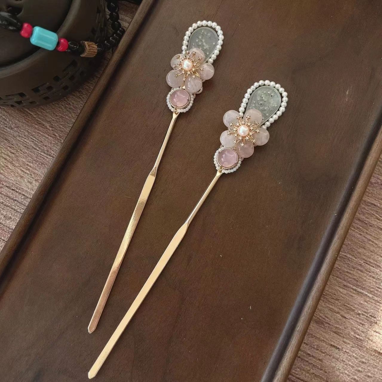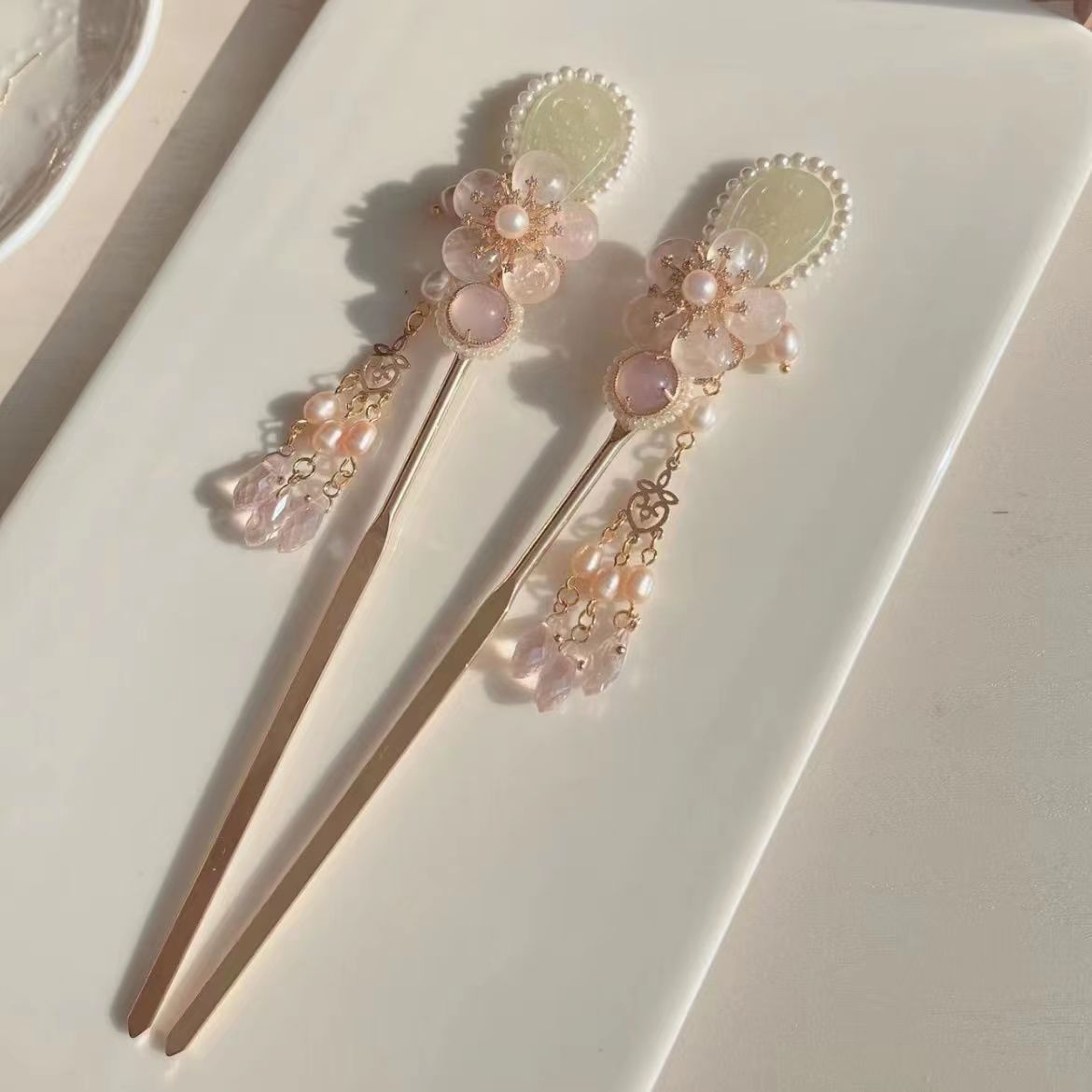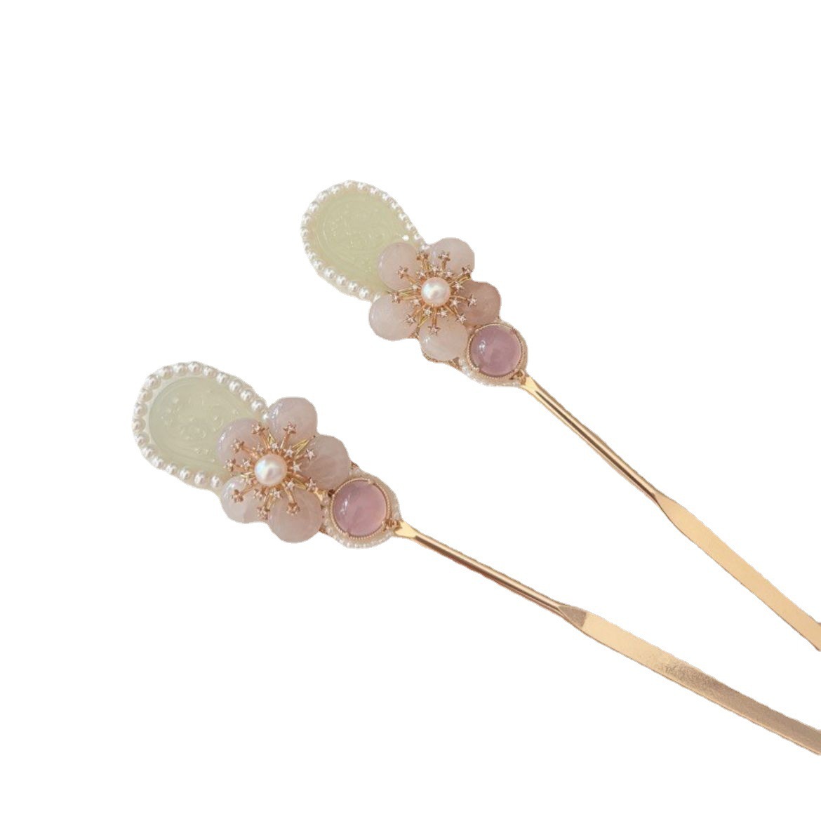 고대 스타일 헤어핀 슈퍼 요정 복숭아 꽃 귀여운 신선한 한후 청삼 매일 액세서리 헤드웨어 고대 의상 간단한 헤어핀스토어 가기