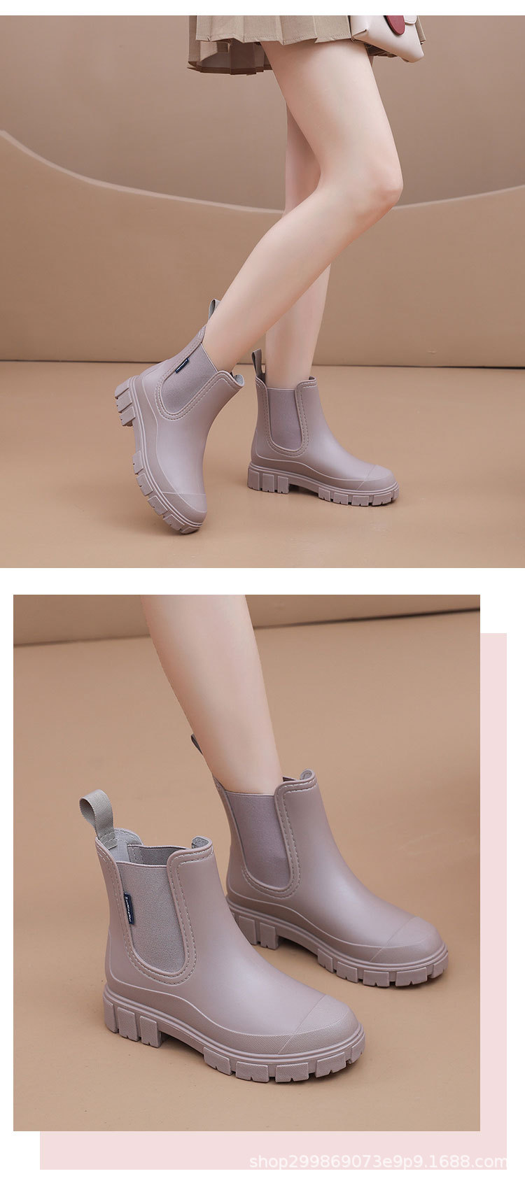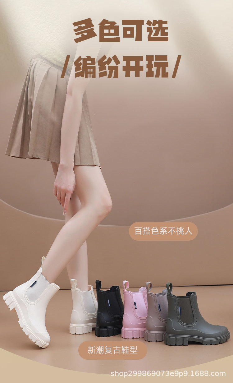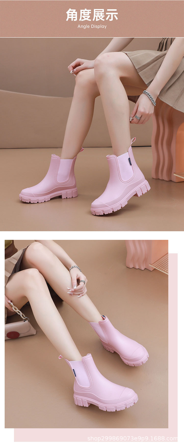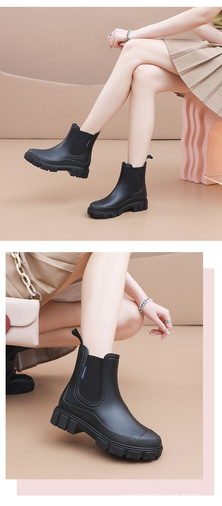 수출 패션 짧은 장화 여성 장화 탄성 마틴 부츠 미끄럼 방지 워터 부츠 신발 방수 성인용 오버 슈즈