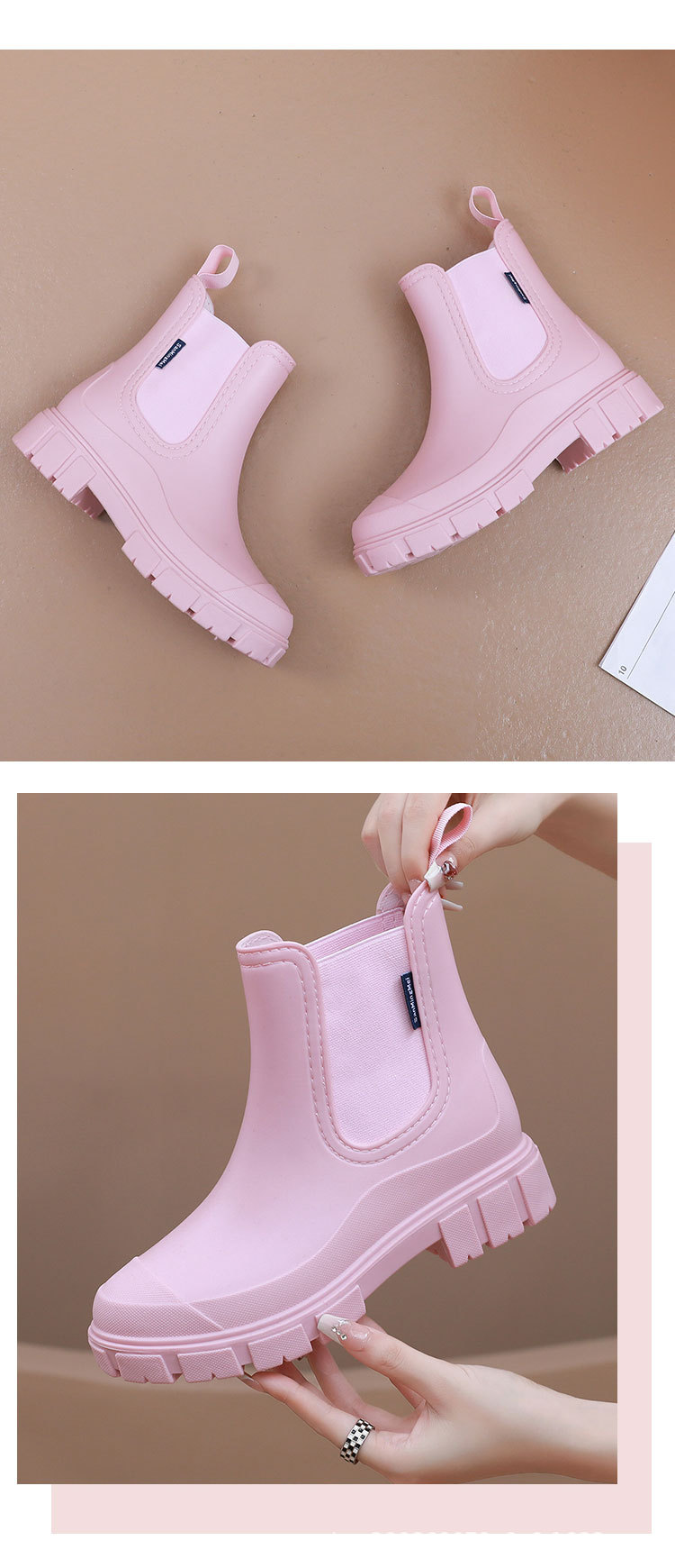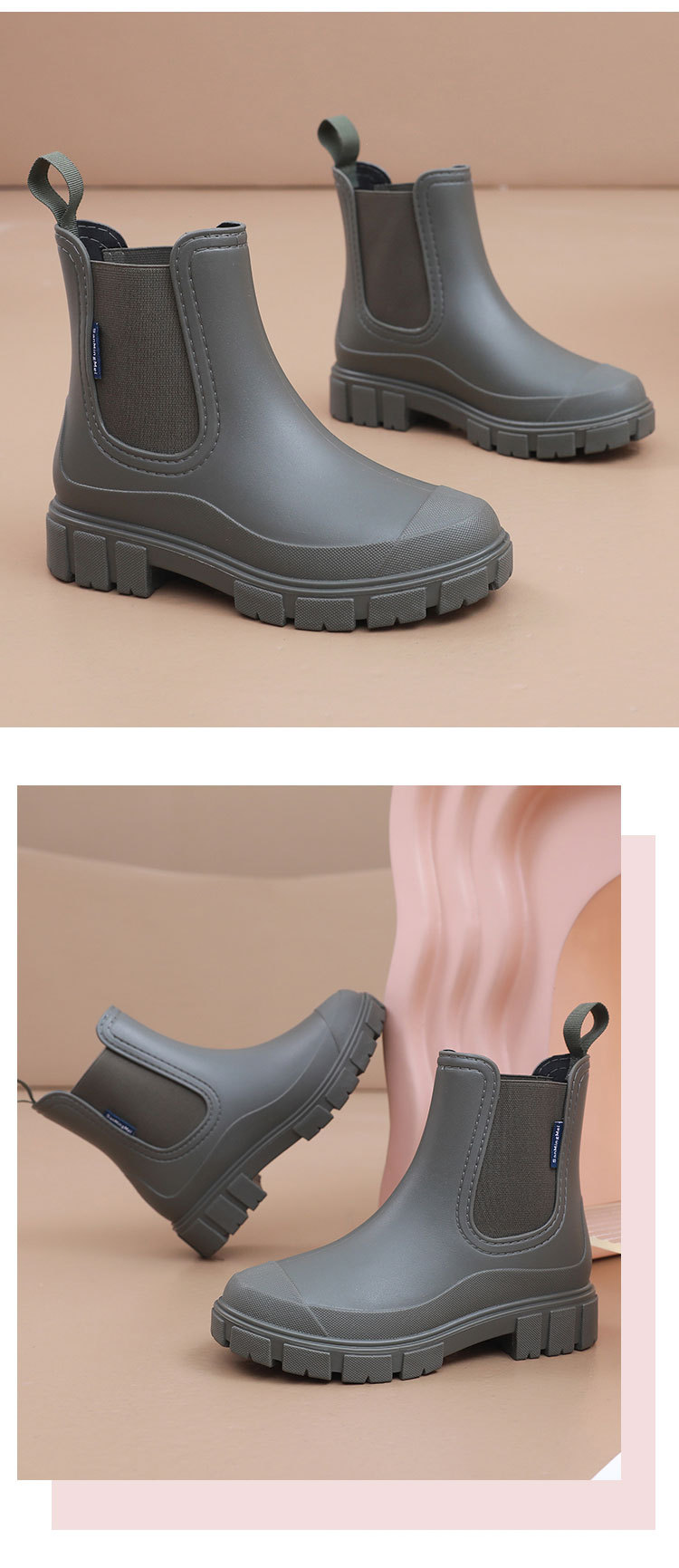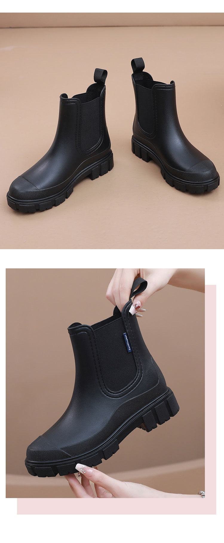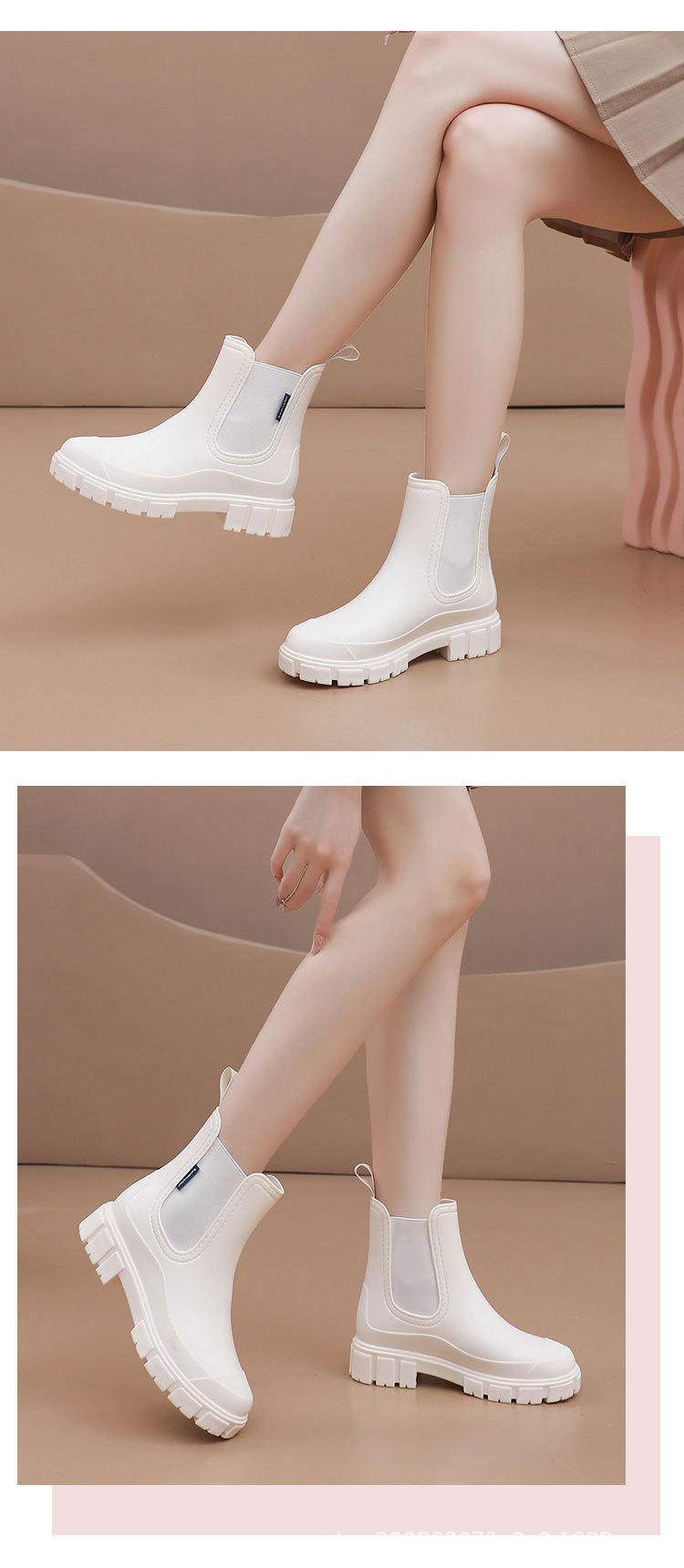수출 패션 짧은 장화 여성 장화 탄성 마틴 부츠 미끄럼 방지 워터 부츠 신발 방수 성인용 오버 슈즈