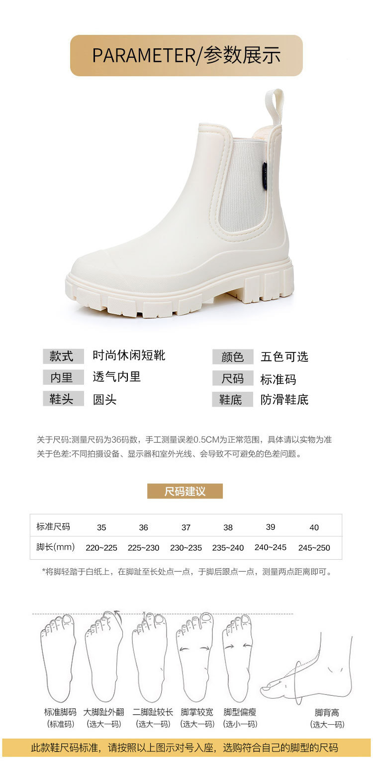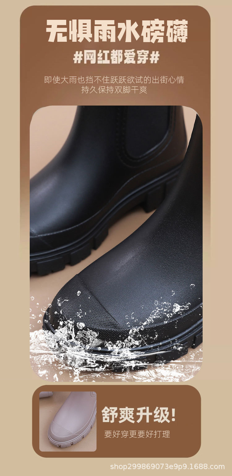수출 패션 짧은 장화 여성 장화 탄성 마틴 부츠 미끄럼 방지 워터 부츠 신발 방수 성인용 오버 슈즈스토어 가기
