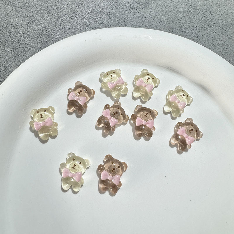 그물 레드 크림 발레 곰 네일 쥬얼리 폭발 활 연인 곰 다크 브라운 네일 장식 드릴 도매