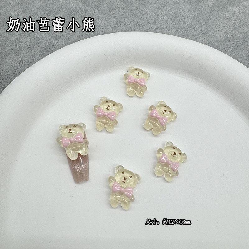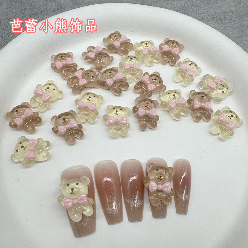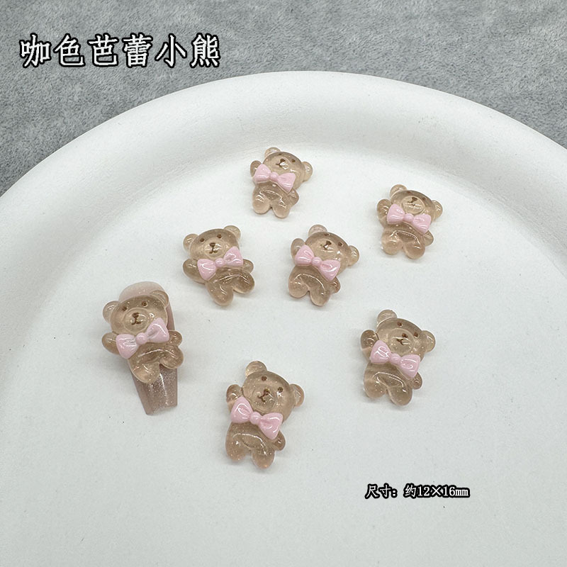 그물 레드 크림 발레 곰 네일 쥬얼리 폭발 활 연인 곰 다크 브라운 네일 장식 드릴 도매스토어 가기