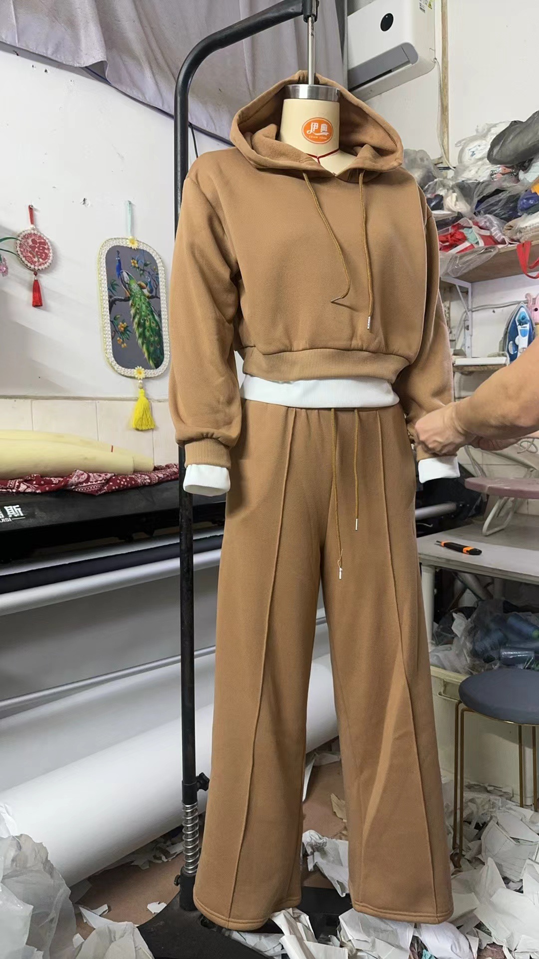 A013 국경을 넘는 유럽과 미국 여성 의류 2024 가을과 겨울의 새로운 스티칭 폭발 후드 조끼 2 개의 캐주얼 세트