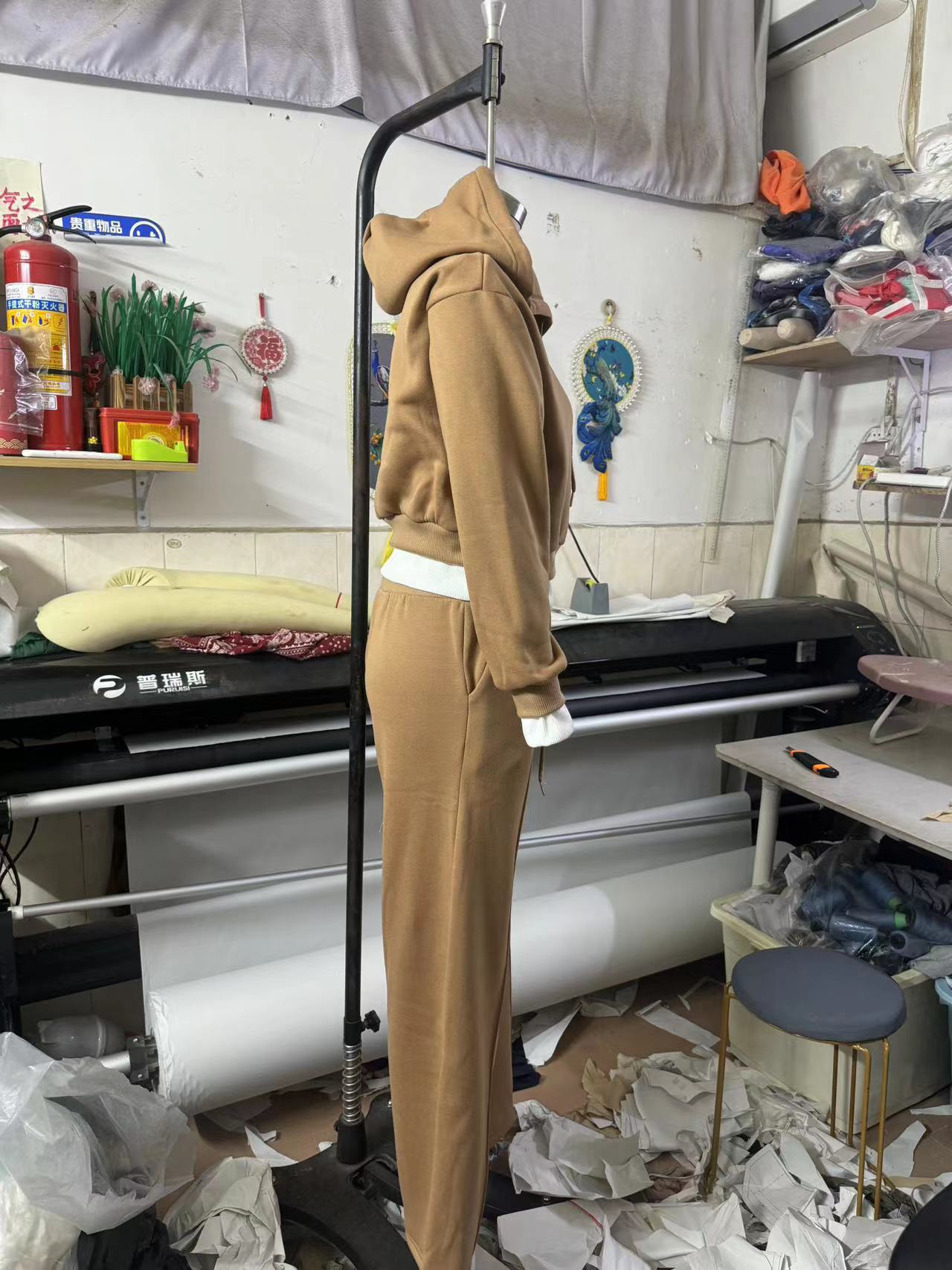 A013 국경을 넘는 유럽과 미국 여성 의류 2024 가을과 겨울의 새로운 스티칭 폭발 후드 조끼 2 개의 캐주얼 세트스토어 가기