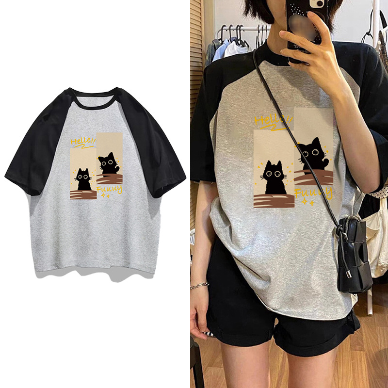 라글란 슬리브 티셔츠 여자 여름 플러스 사이즈 통통녀 하이 엔드 센스 아메리칸 스타일 반팔 트렌디 브랜드 인스타그램 스타일 슬리밍 코튼 올매치 탑스토어 가기