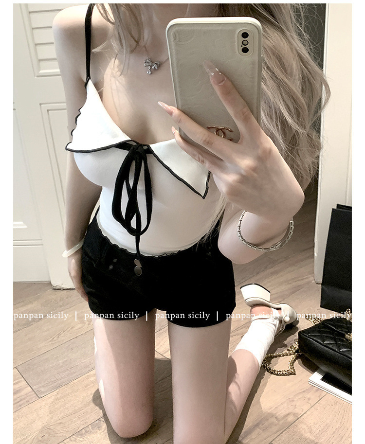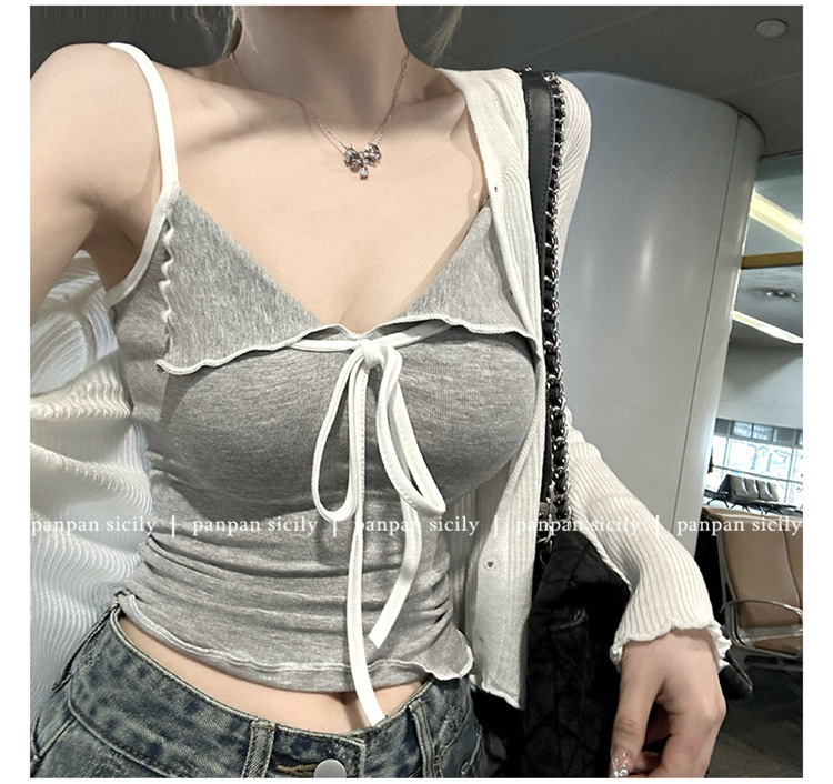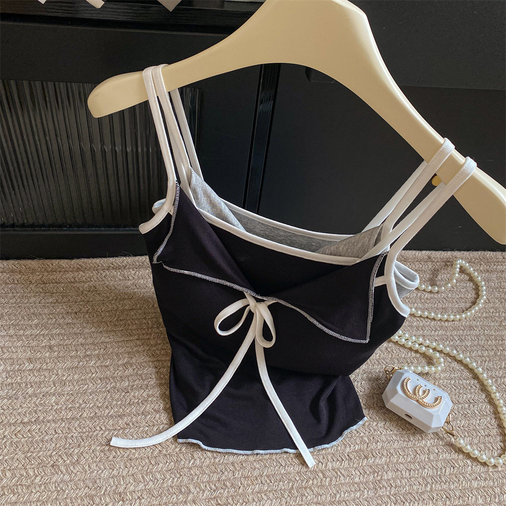새 탑 활 달콤하고 매운 외부 조끼 민소매 섹시 슬링 스트랩 범프베이스 슬림 핏 내부 나비 착용