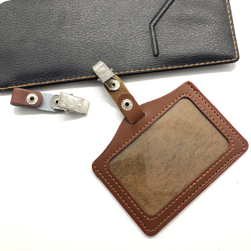 가죽 카드 세트 PU 모방 가죽 배지 세트 작업 카드 전시 카드 클립 가죽 액세스 카드 버스 아마존 공장