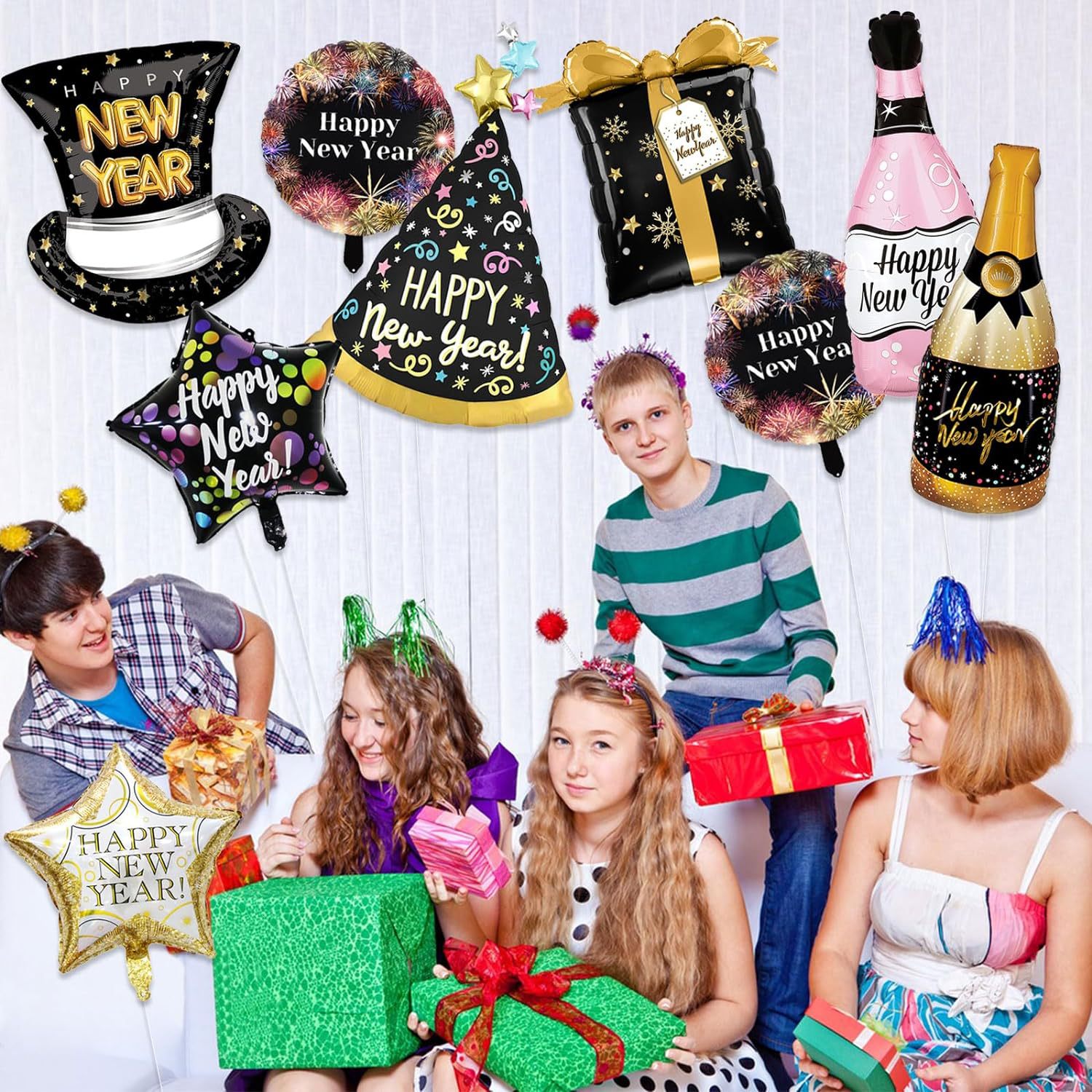 해피 뉴 이어 알루미늄 필름 풍선 해피 뉴 이어 생일 유성 와인 병 연례 축하 파티 새해 풍선스토어 가기