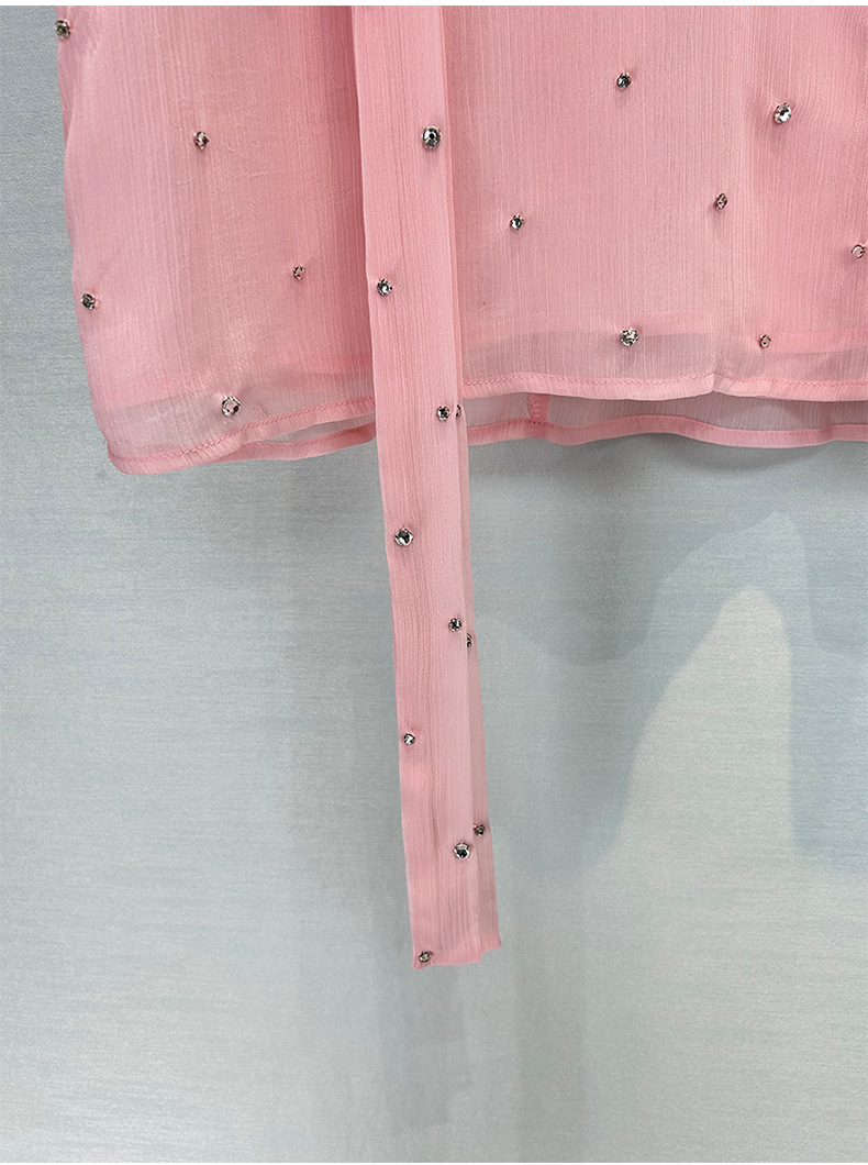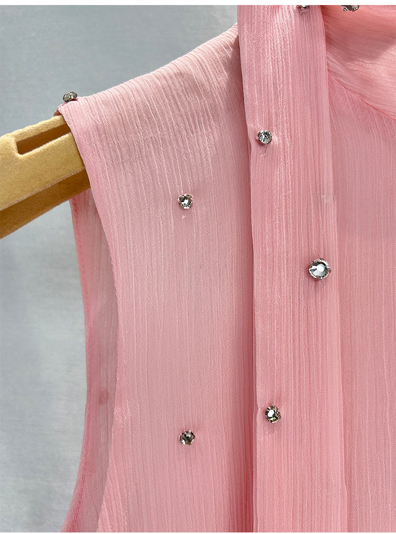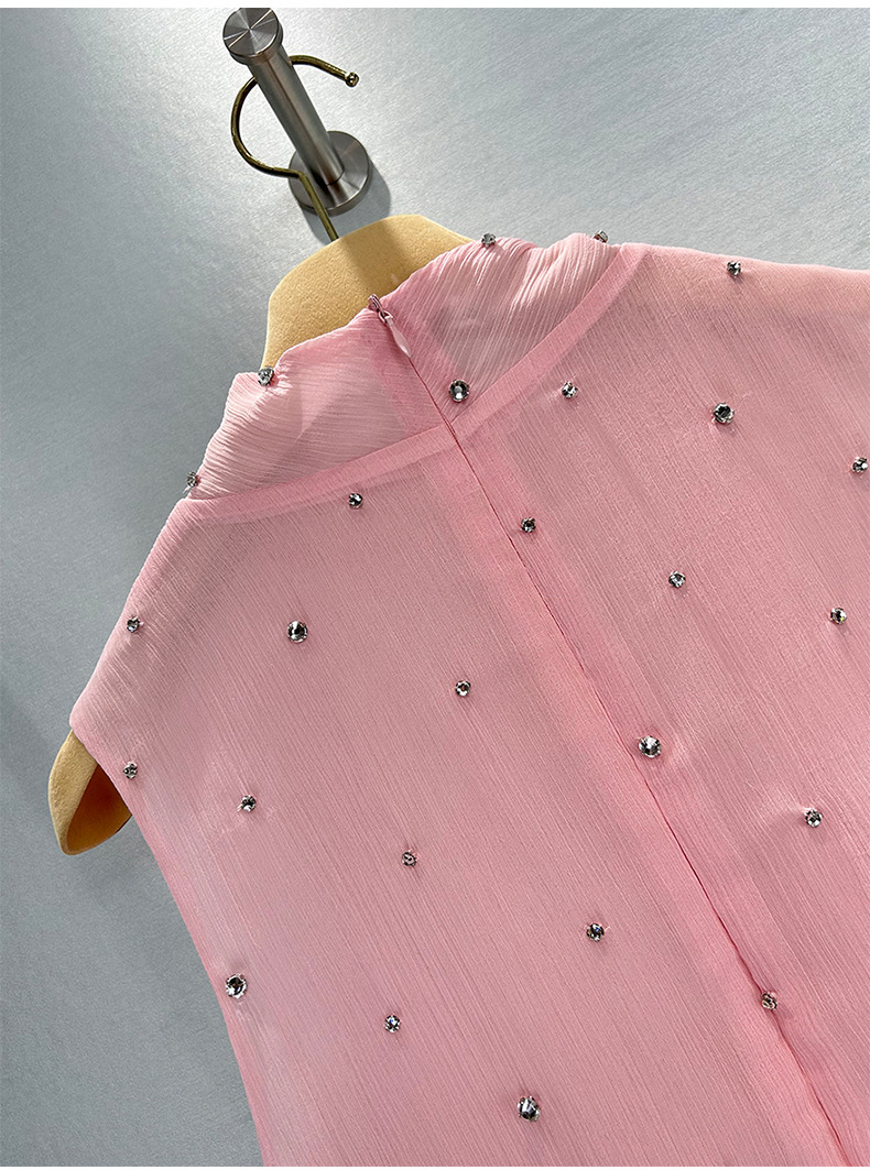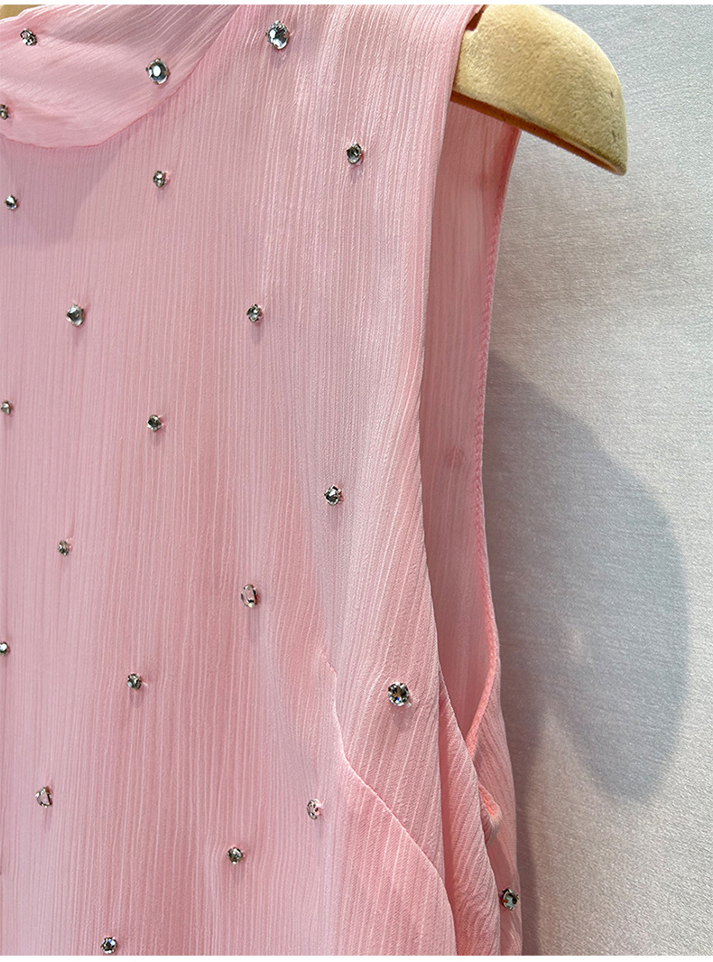 Miu 스타일 핑크 다용도 민소매 셔츠 핸드메이드 다이아몬드 레이스 업 스위트 디자인 풀오버 셔츠 여성 여름 탑