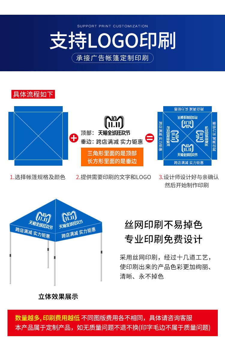 야외 광고 접이식 텐트 인쇄 도매 스톨 방수 맞춤형 전시 프로모션 4 코너 차양스토어 가기