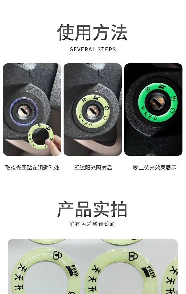 형광 스티커 전기 자동차 발광 점화 키 링 슈퍼 밝은 열쇠 구멍 머리 조리개 스티커 성격 스위치 링 장식스토어 가기