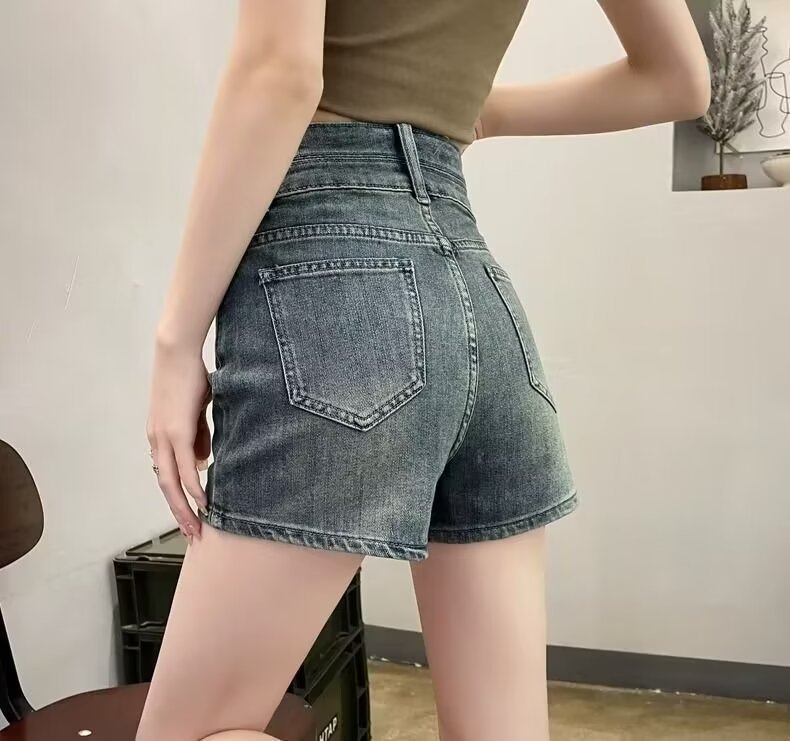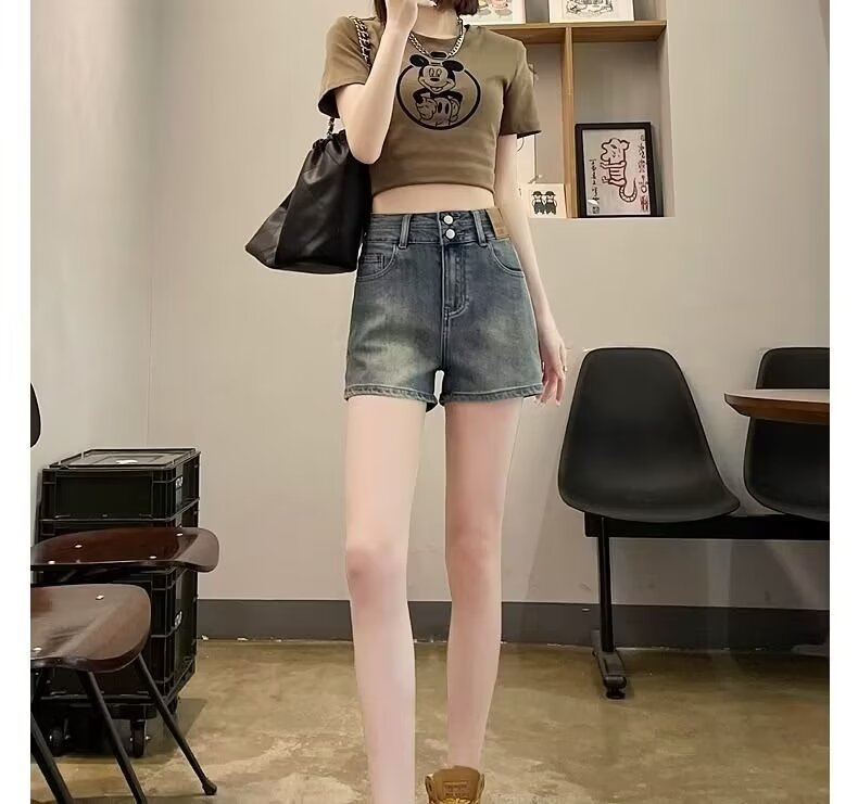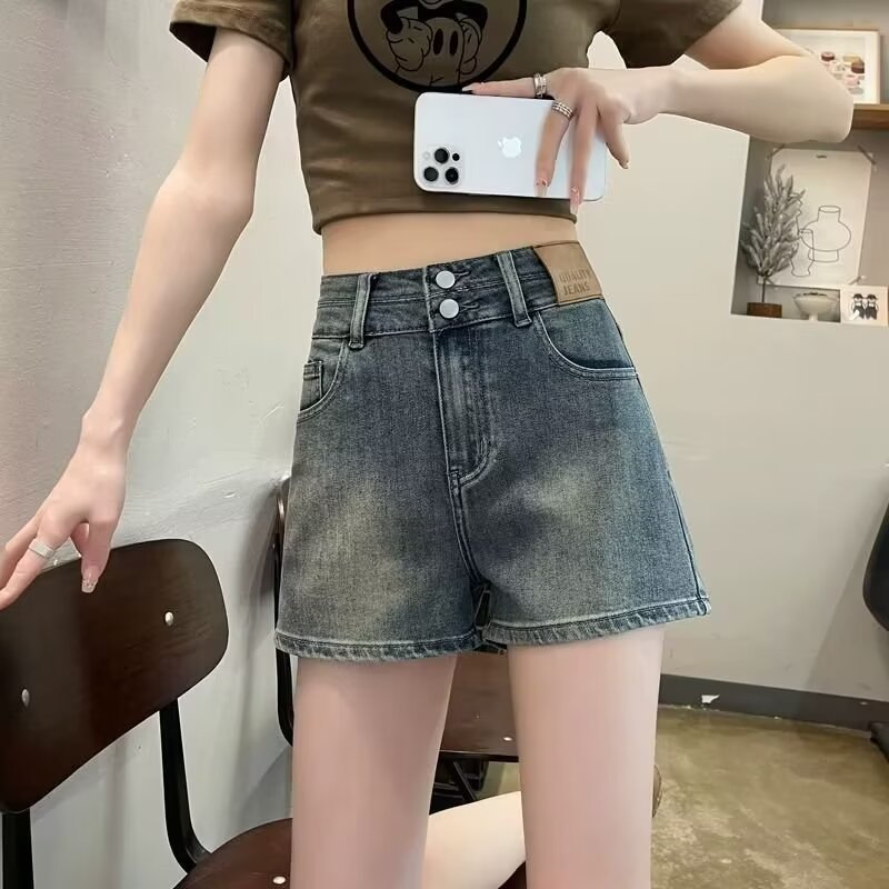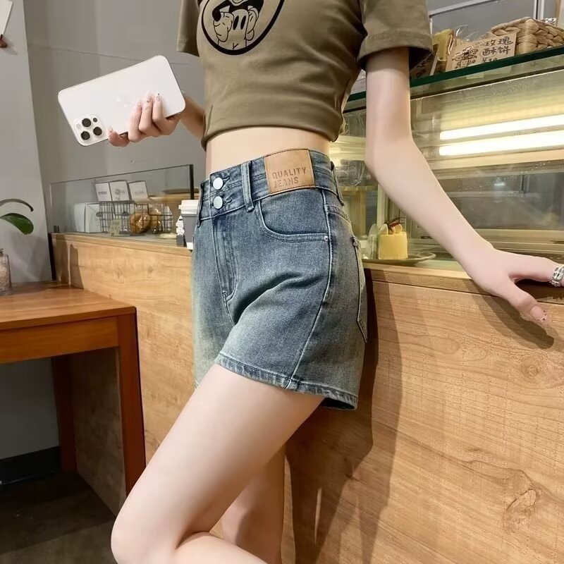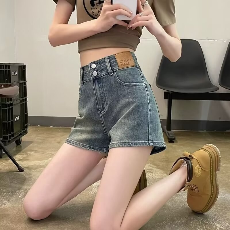 미국 레트로 높은 허리 데님 반바지 여성 여름 2024 스파이스 걸을위한 새로운 핫 바지 작은 슬리밍 넓은 다리 A 자형 핫 바지스토어 가기
