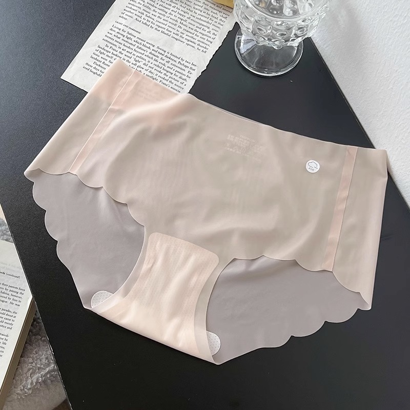여성용 심리스 팬티, 면 가랑이 마스크 팬츠, 일체형 팬티, 통기성 누드 아이스 실크 반바지, 반투명스토어 가기