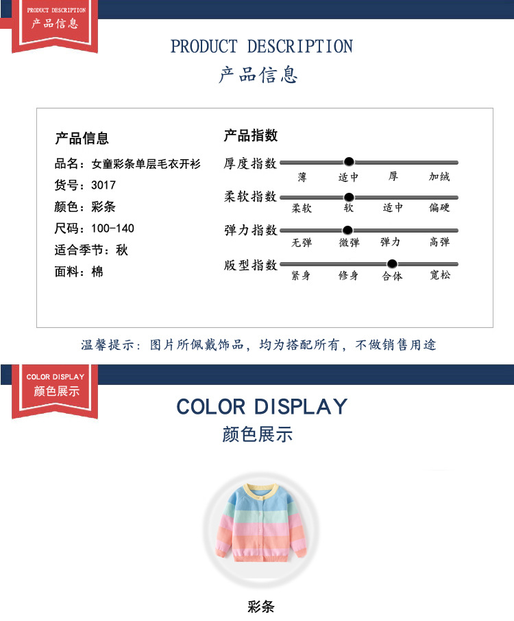 공장 직접 판매 한국 스타일 아동 의류 소녀 레인보우 스트립 스웨터 2025 가을 새로운 어린이 단층 면사 니트 가디건스토어 가기