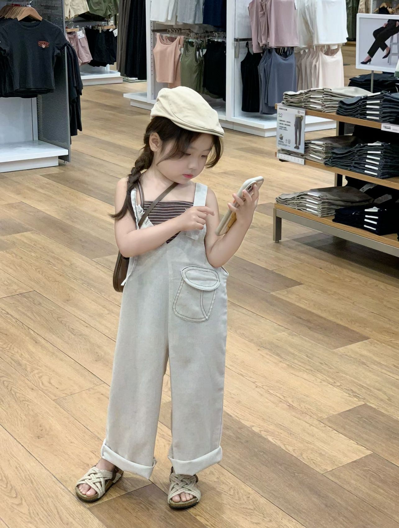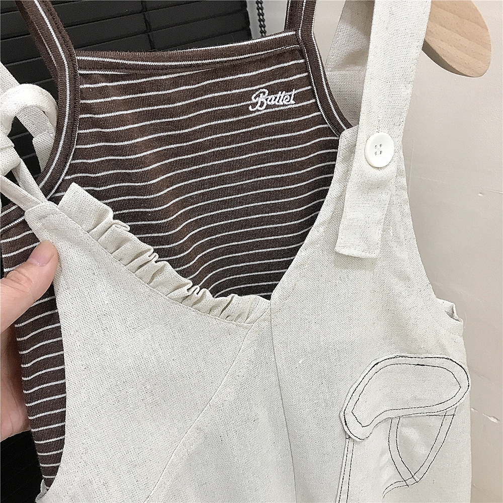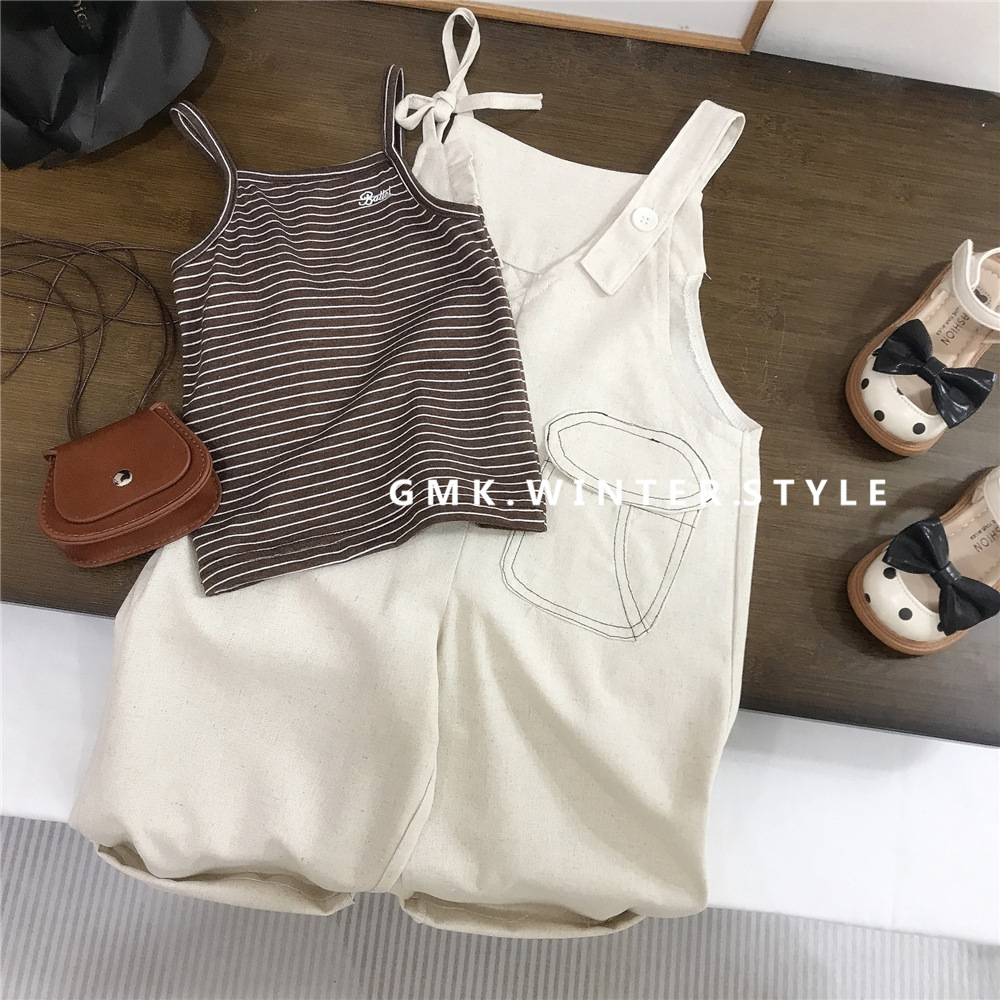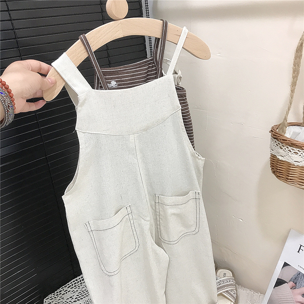 한국 아동복 여름 새로운 흰색 바지 멜빵 디자인 감각 점프 수트 소녀 스트라이프 멜빵 트렌디 한 대외 무역스토어 가기
