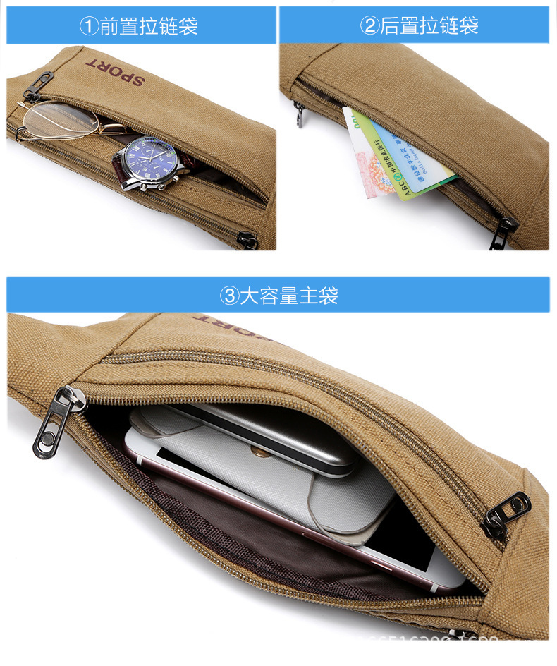 국경 간 허리 가방 캔버스 남성 허리 가방 야외 스포츠 등산 가방 피트니스 러닝 백 초박형 초경량 휴대 전화 가방스토어 가기