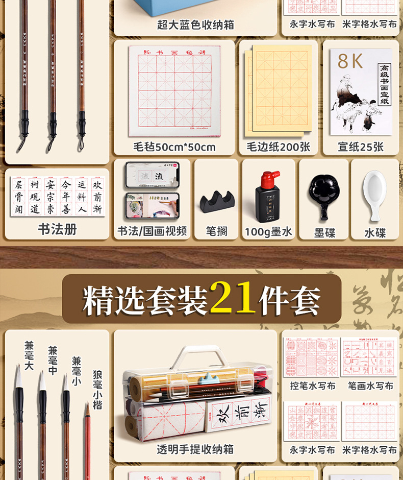 • [훌륭한 가치] 엄선된 21종 세트(확대된 보관함 + 새로 추가된 Langhao 소형 일반 스크립트 브러시 + 30개)