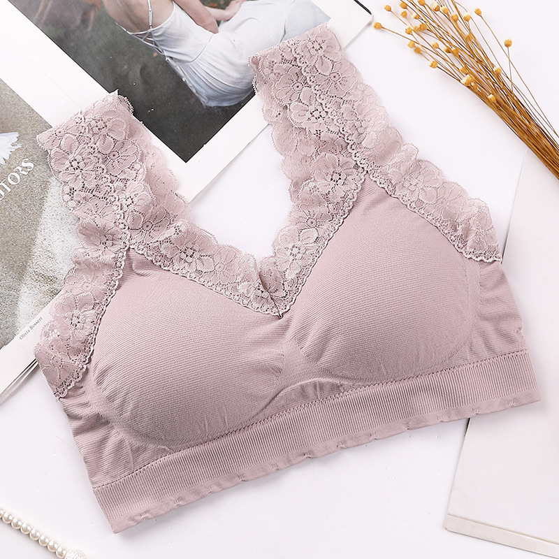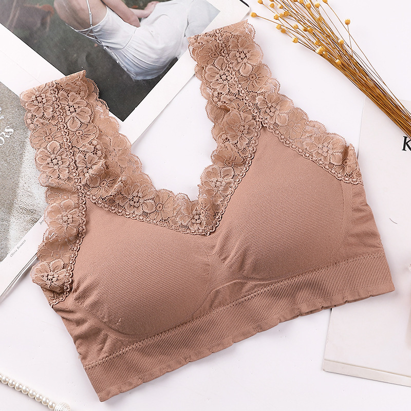 완벽한 새 스타일 레이스 아름다운 뒤로 포장 된 가슴 튜브 탑 스틸 링 안티 러닝 라이트 섹시한 레이스 V-넥 베이스 조끼 여성을위한스토어 가기