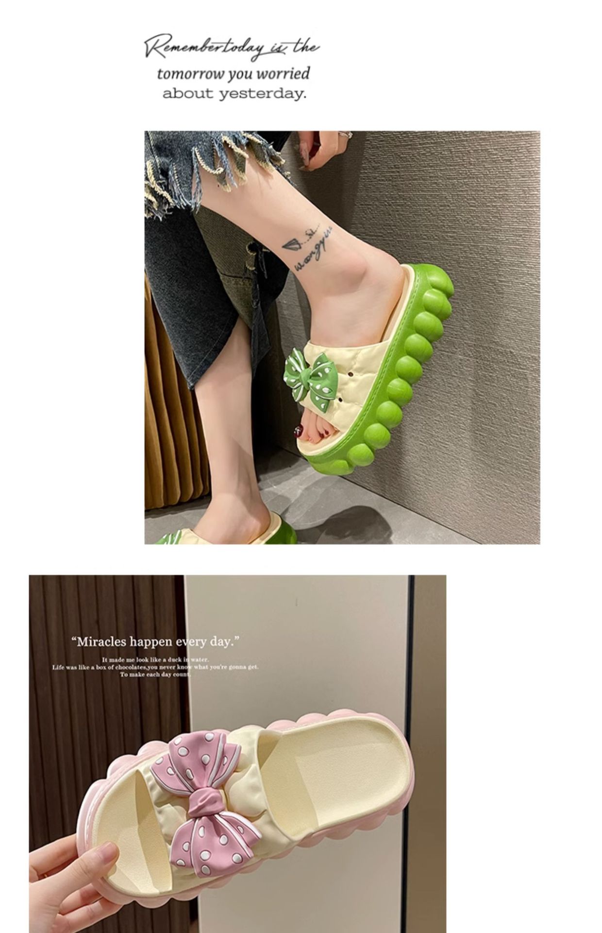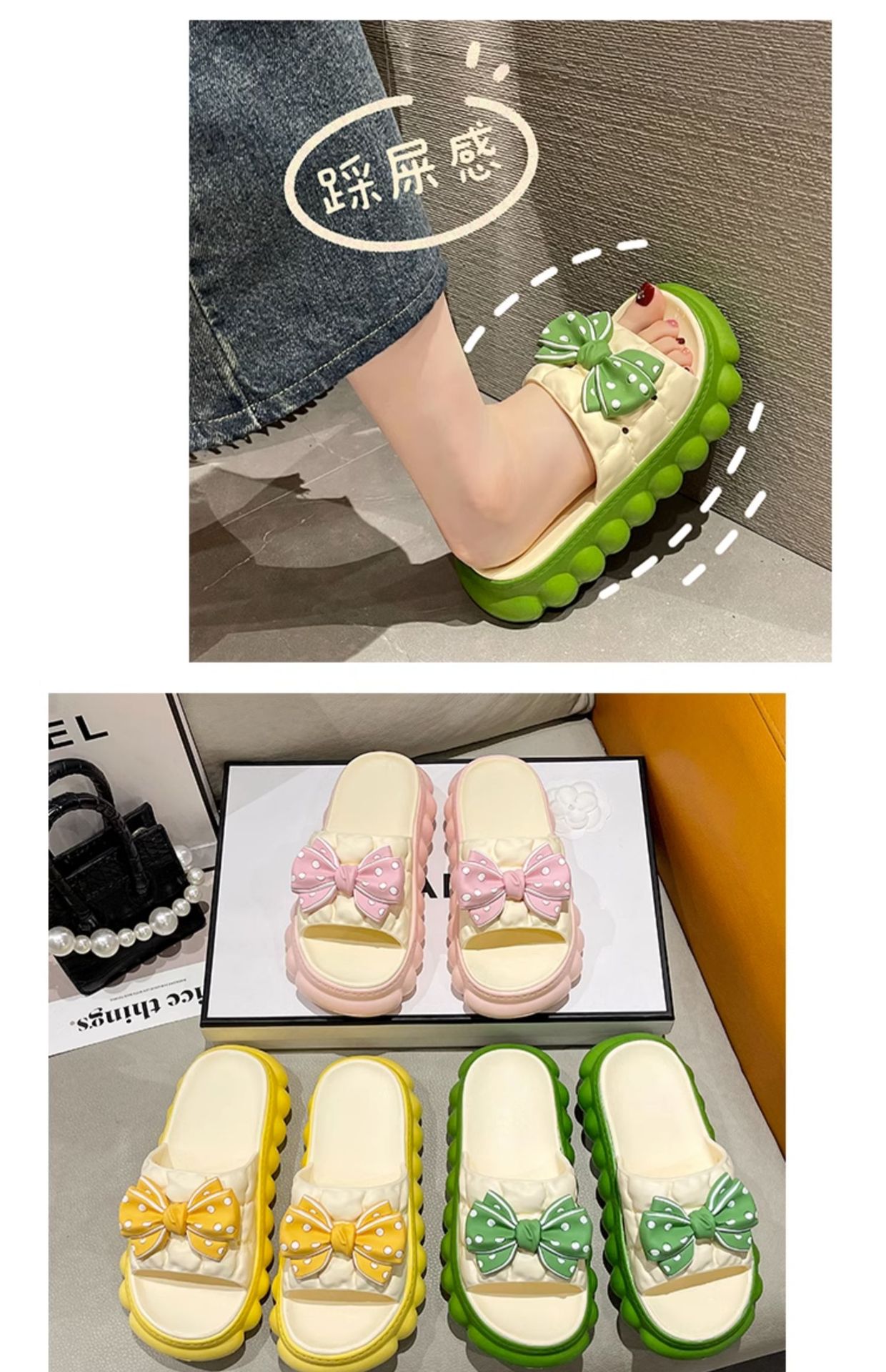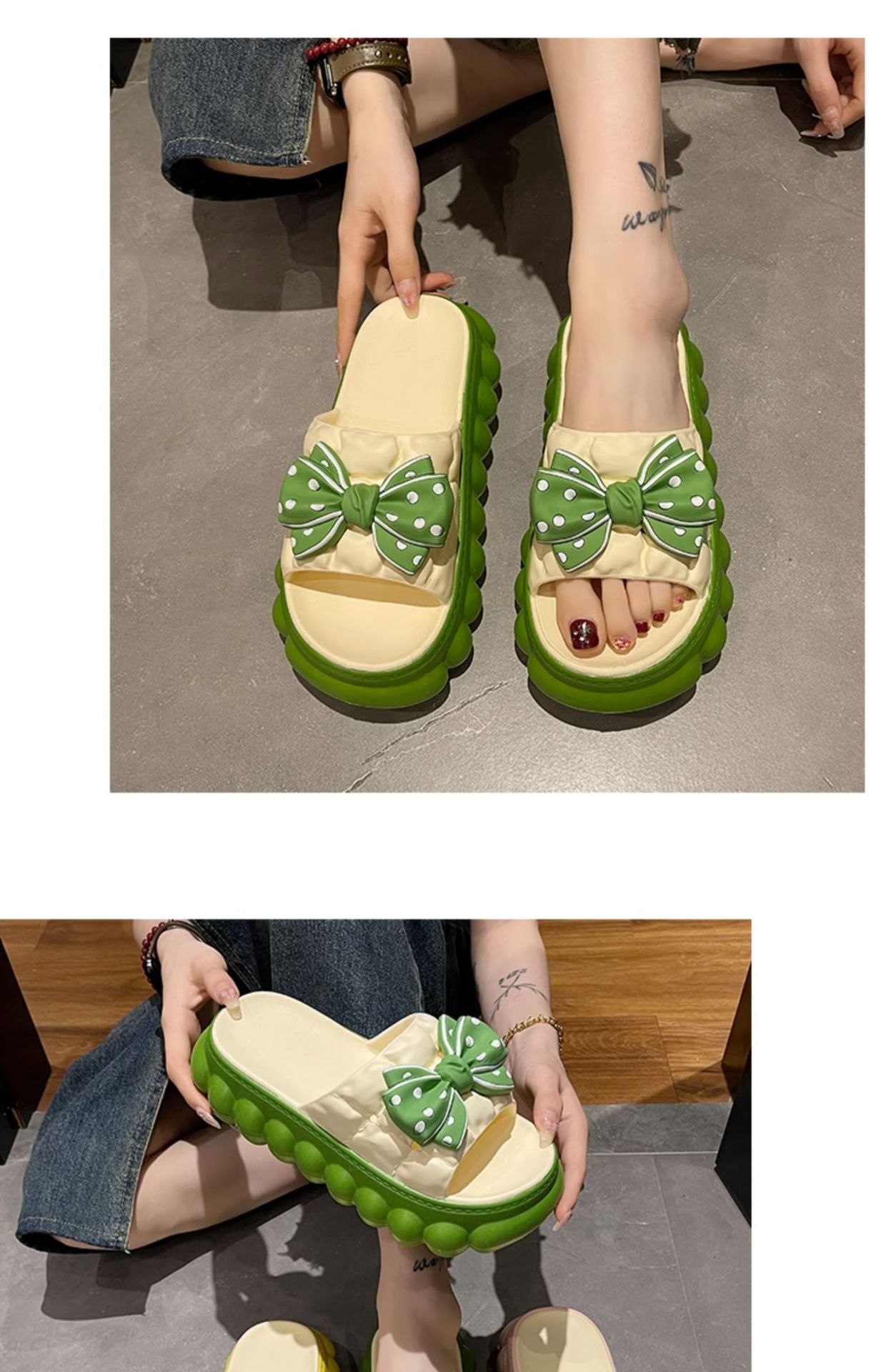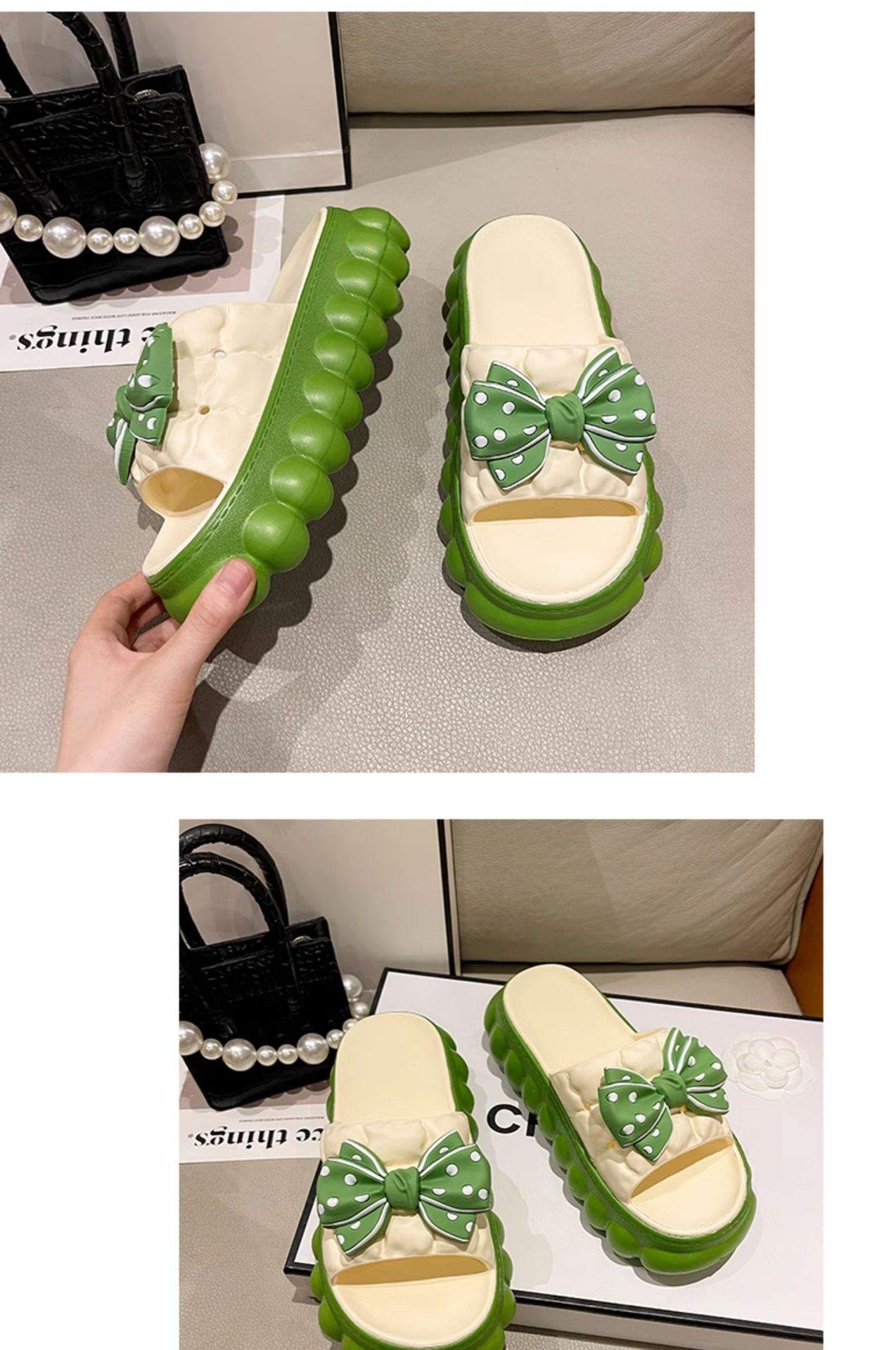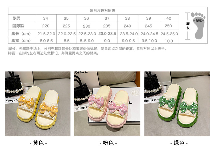 • 녹색 BS 두꺼운 밑창 하이트닝 보우 슬리퍼