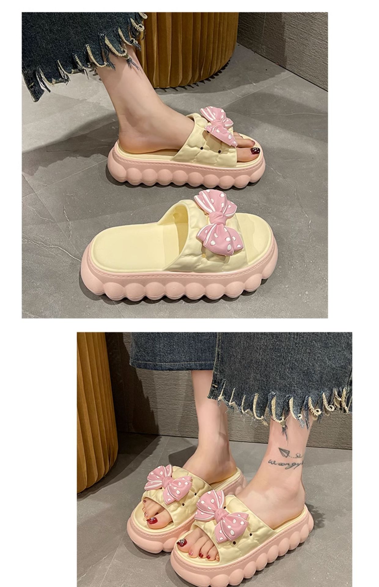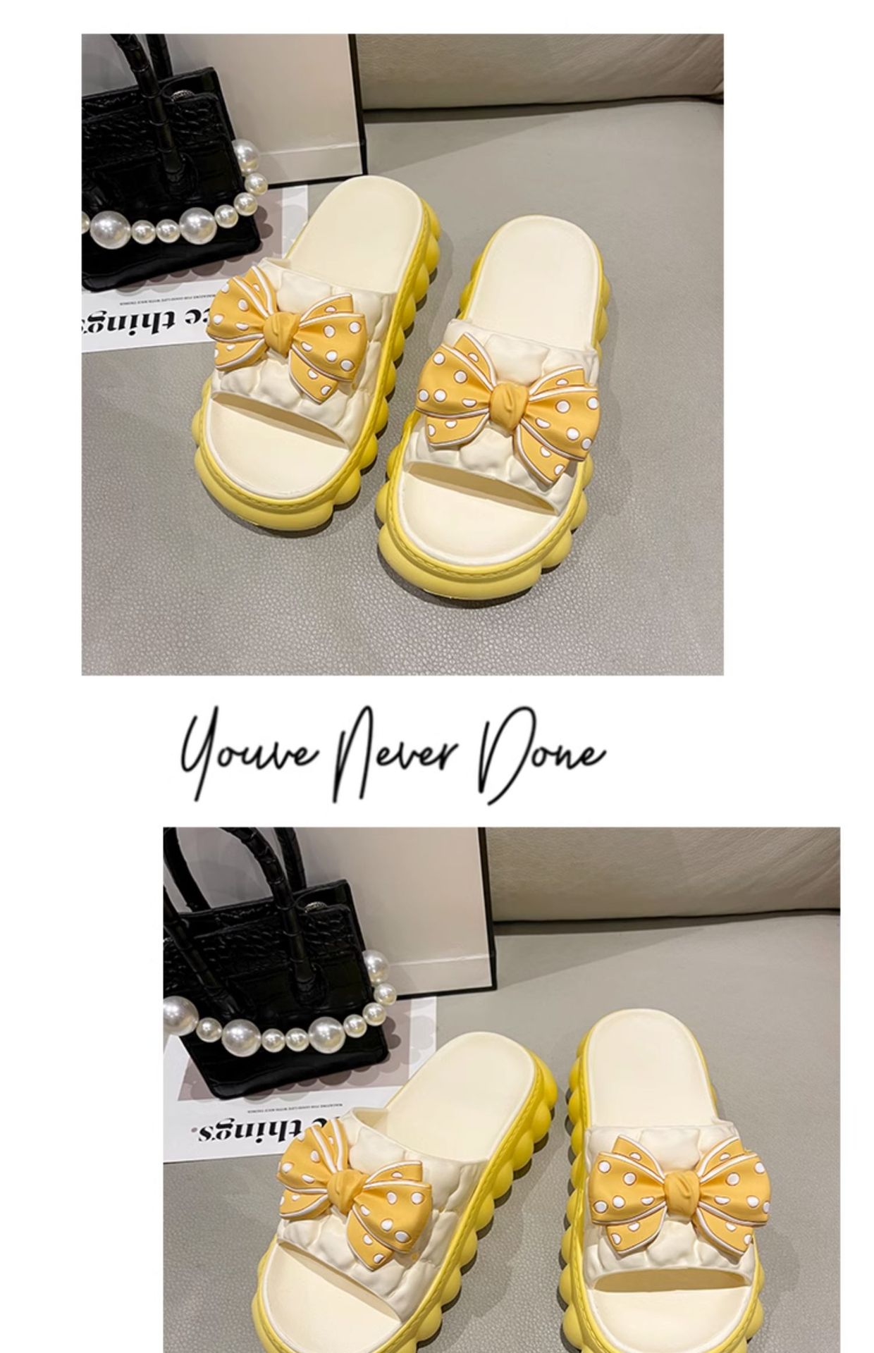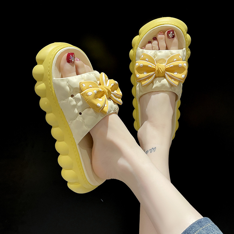 • 노란색 BS 두꺼운 밑창 하이트닝 보우 슬리퍼