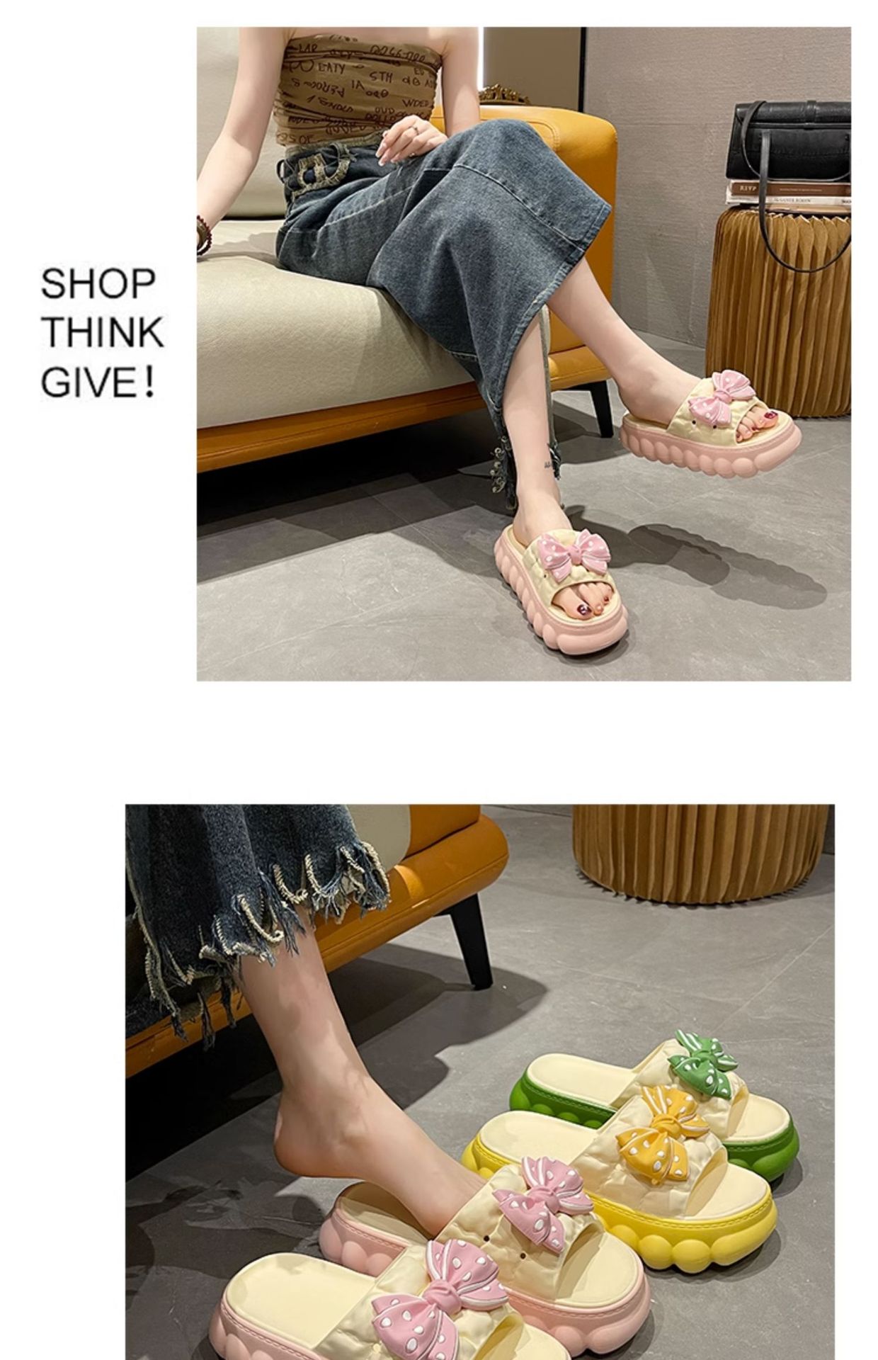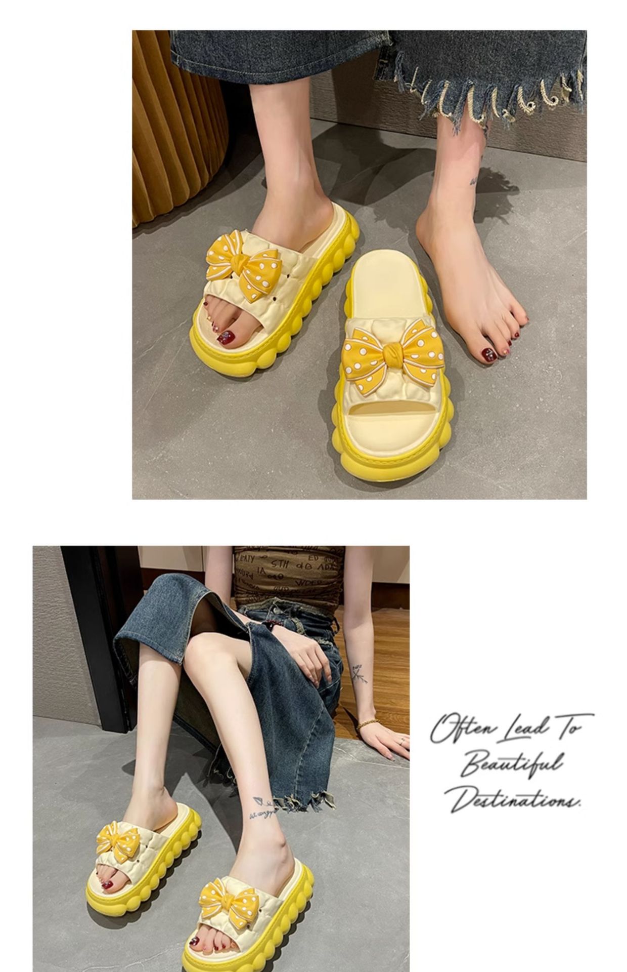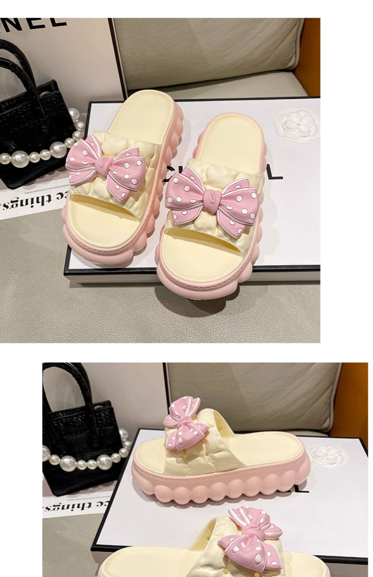• 노란색 BS 두꺼운 밑창 하이트닝 보우 슬리퍼
