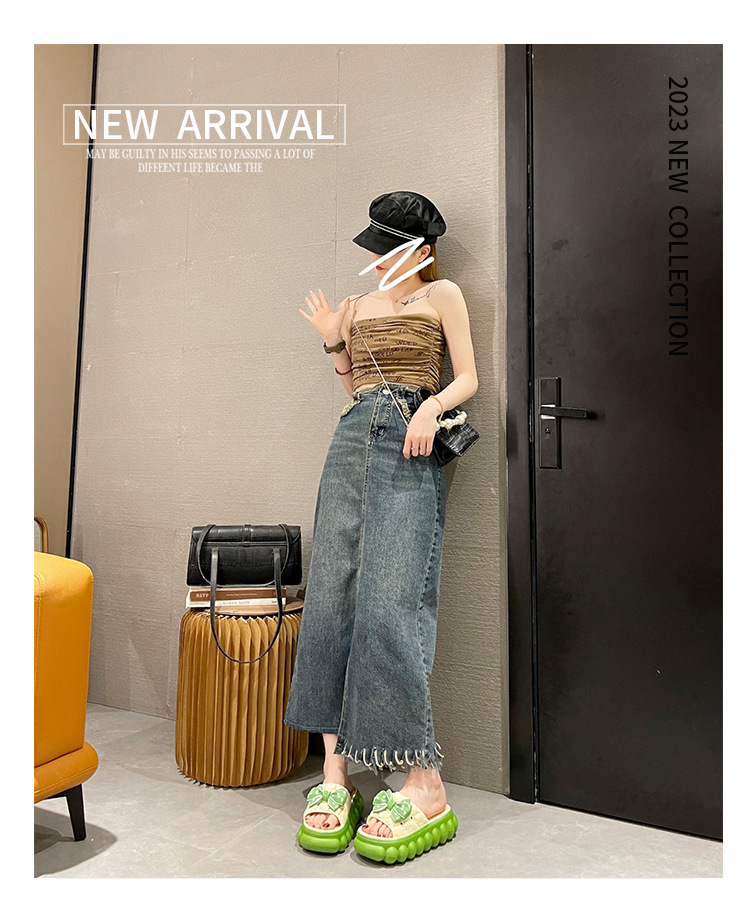 두꺼운 바닥 슬라이드 여성의 2024 여름 새로운 귀여운 활 높은 미끄럼 방지 실내 가정 및 외부 착용 샌들스토어 가기