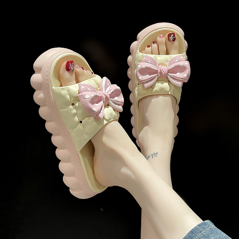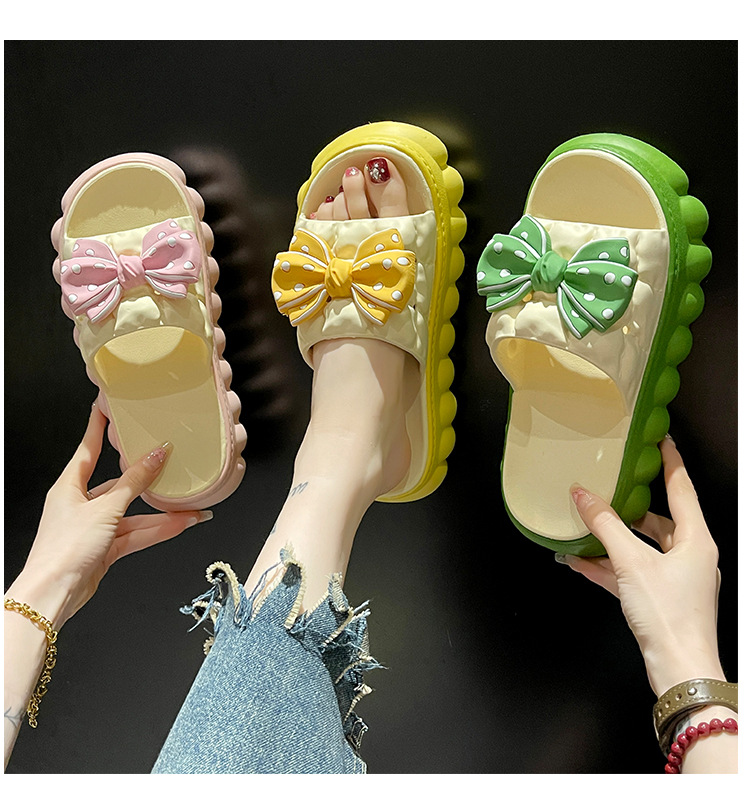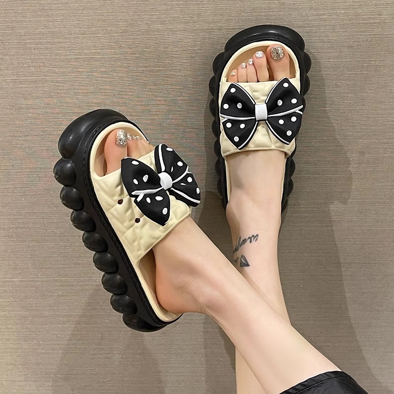 두꺼운 바닥 슬라이드 여성의 2024 여름 새로운 귀여운 활 높은 미끄럼 방지 실내 가정 및 외부 착용 샌들