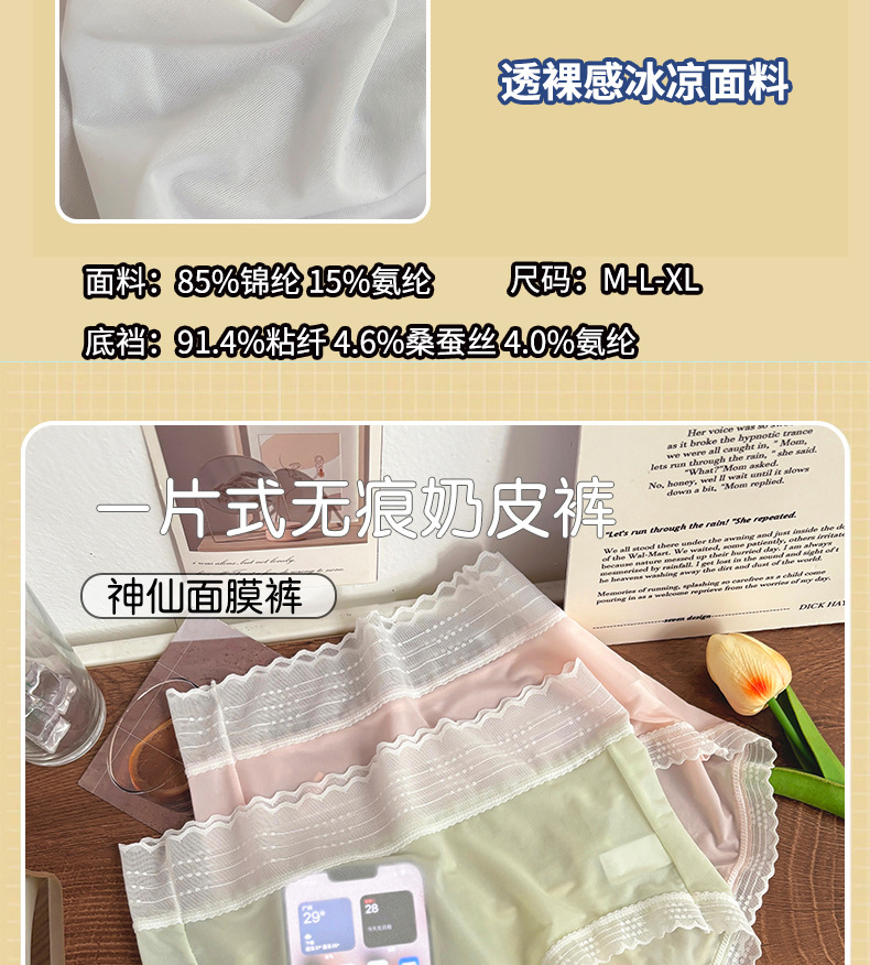 여름 달콤한 벌거 벗은 원피스 비 마킹 우유 가죽 바지 중간 허리 실크 항균 바닥 Crotch 통기성 힙합 브리프