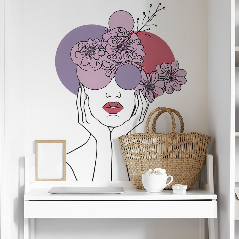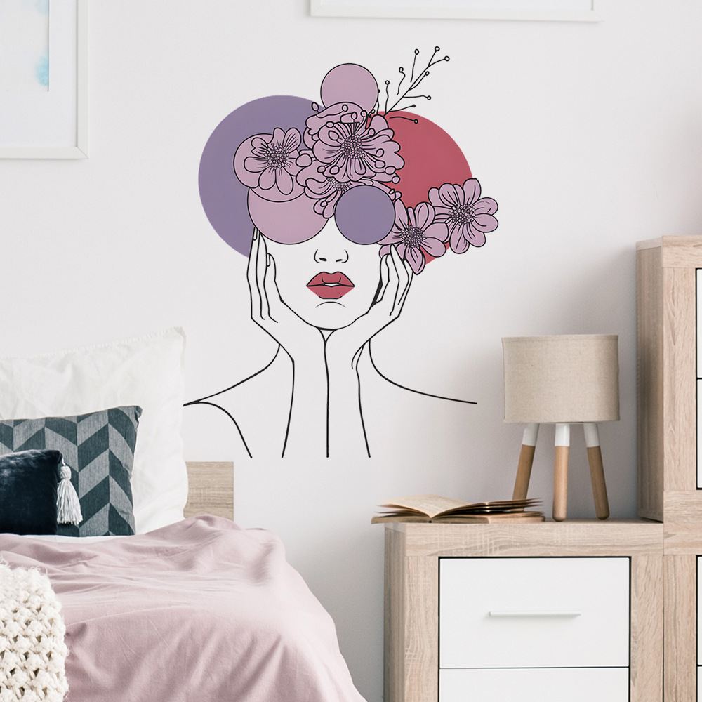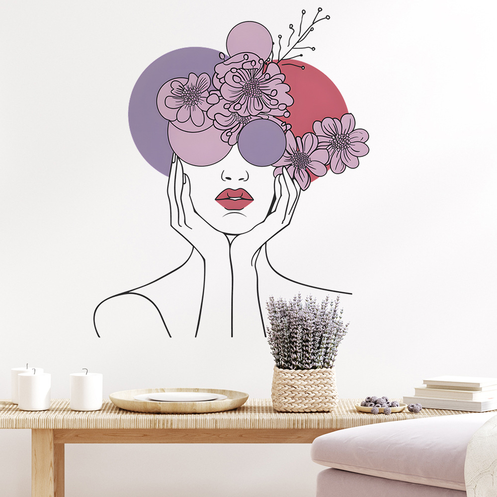 Fun-L006 아트 보라색 꽃 라인 뷰티 침실 거실 배경 미화 장식 벽 스티커스토어 가기