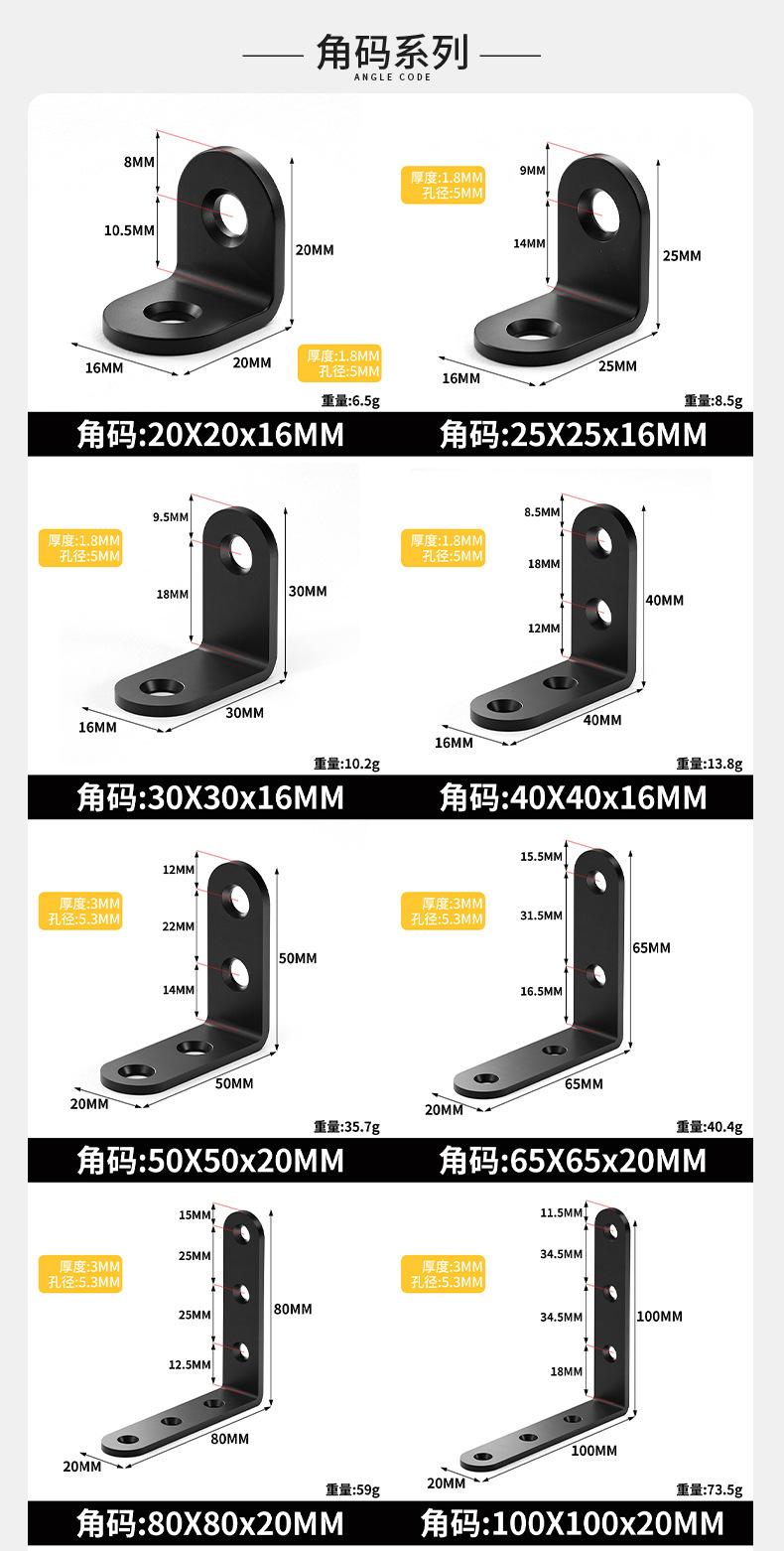 두꺼운 스테인레스 스틸 앵글 코드 직각 픽서 브래킷 라미 나 지원 직각 철 파티션 고정 블랙 앵글 코드스토어 가기