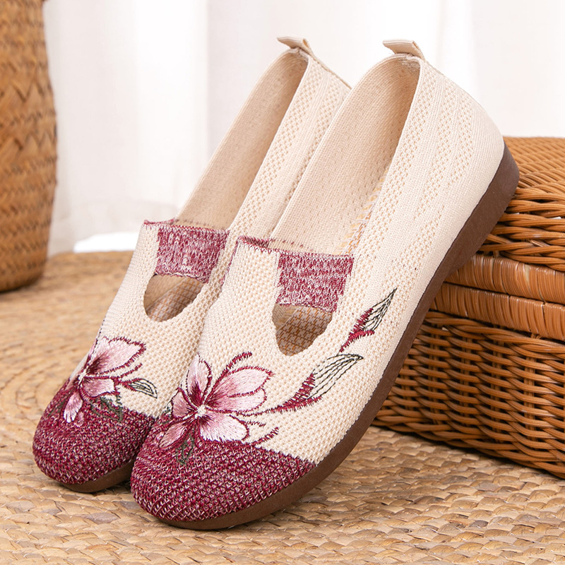2024 년 여름 오래 된 베이징 천 신발 여성 수 놓은 얕은 입 통기성 캐주얼 신발 플랫 슬립 온 게으른 신발