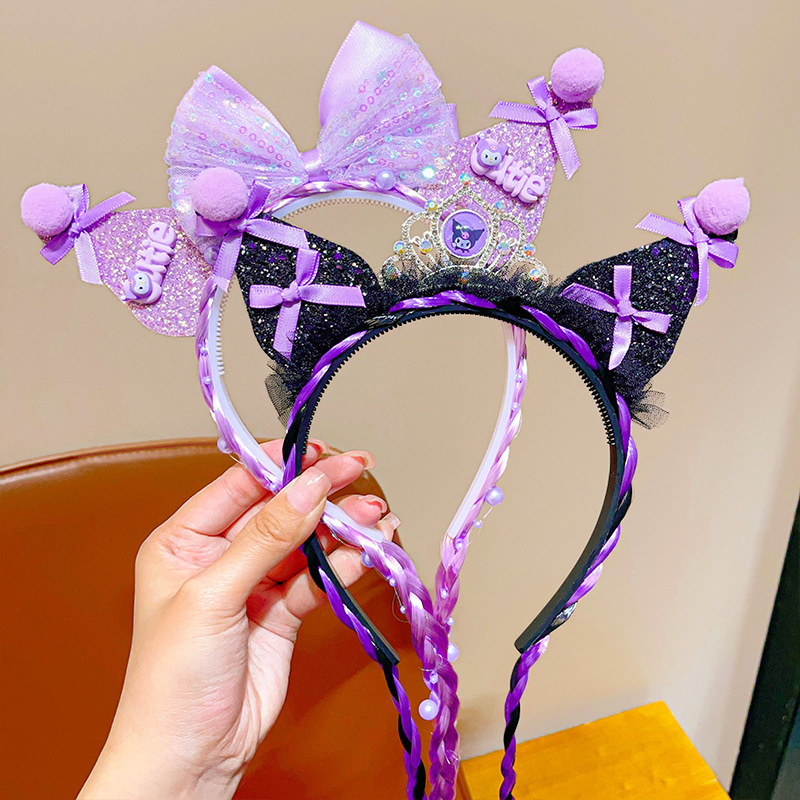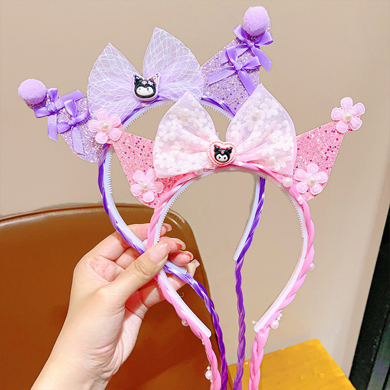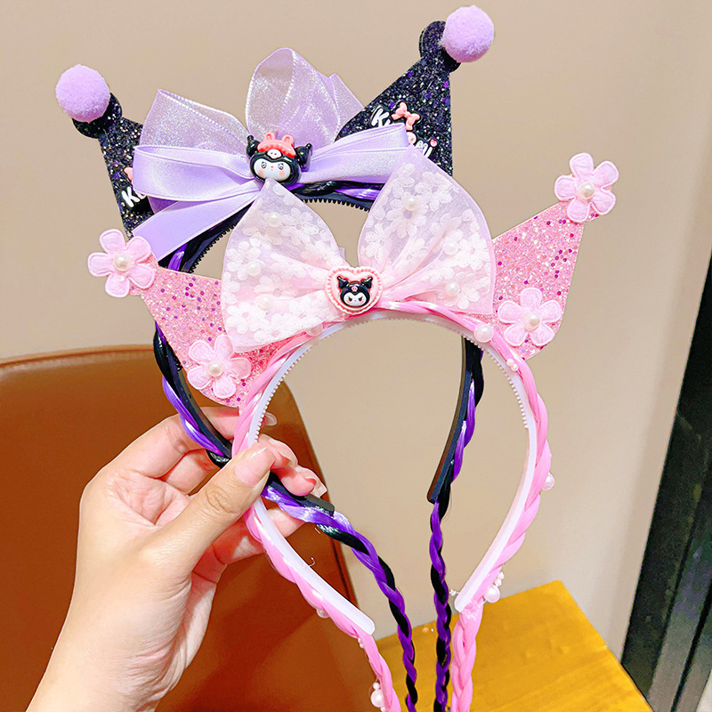어린이 Kulomi 활 머리띠 소녀 귀여운 만화 머리 머리띠 작은 소녀 크라운 리본 헤어 액세서리 새로운