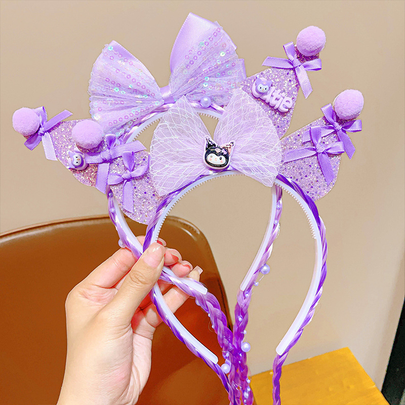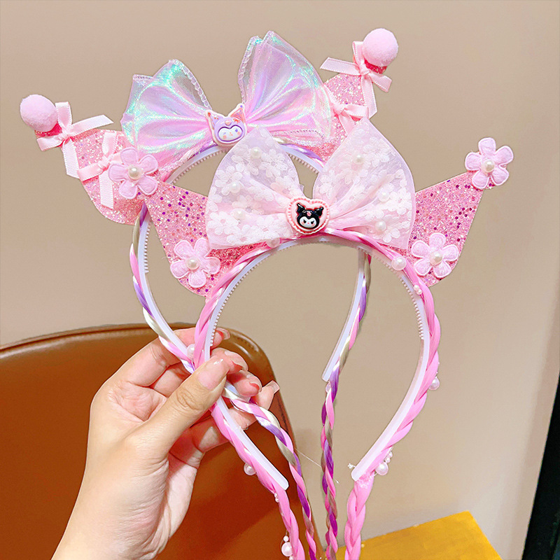 어린이 Kulomi 활 머리띠 소녀 귀여운 만화 머리 머리띠 작은 소녀 크라운 리본 헤어 액세서리 새로운스토어 가기