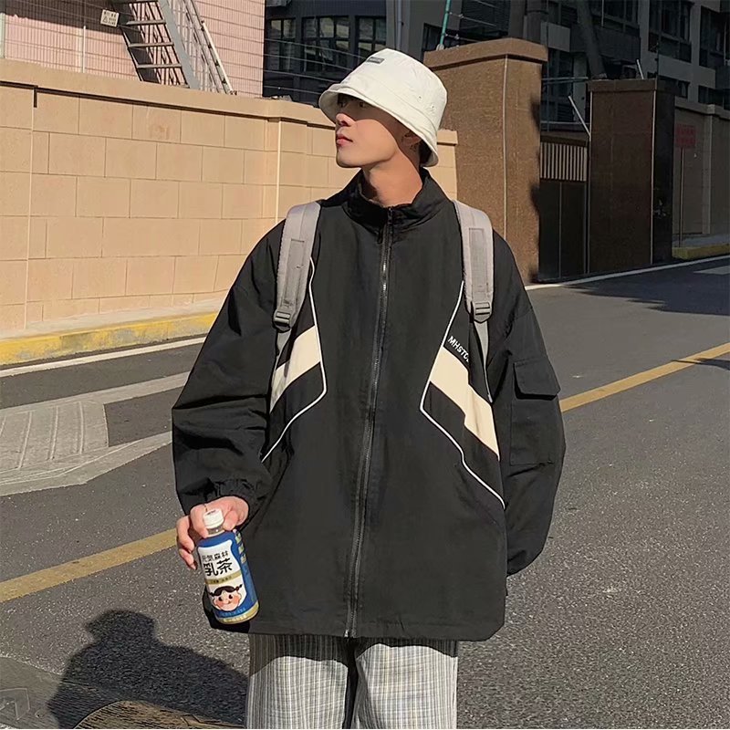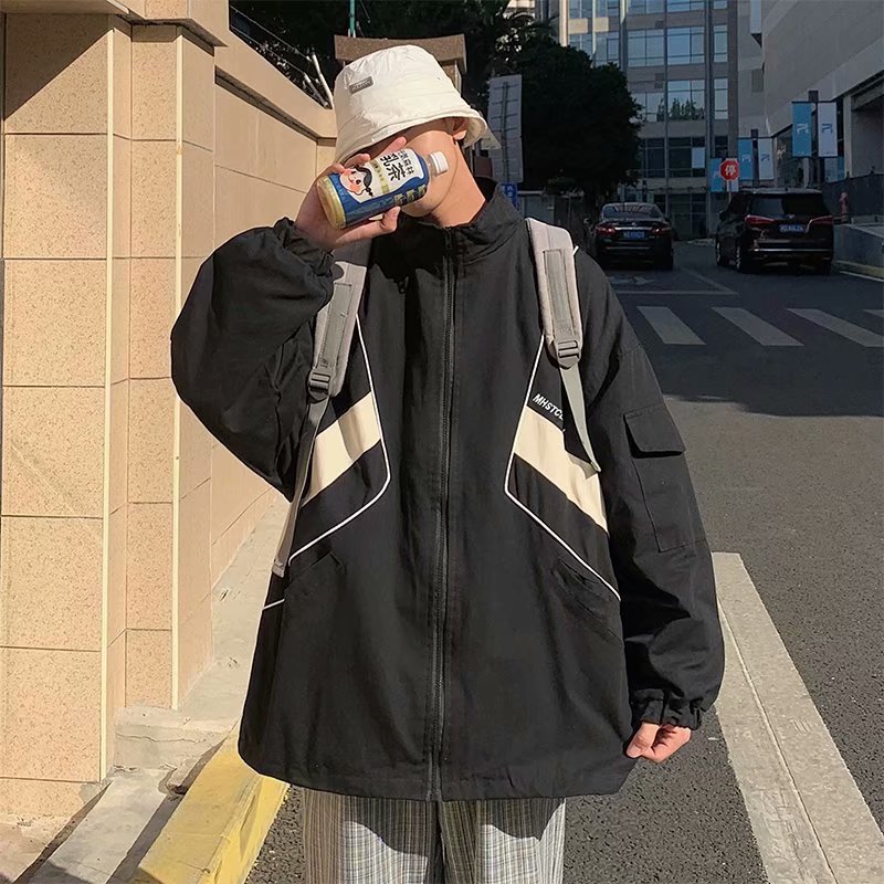 일본식 컬러블록 재킷 남성용 마운틴 스타일 트렌디 브랜드 미국 스타일 레트로 느슨하고 잘 생긴 야외 칼라 캐주얼 재킷스토어 가기