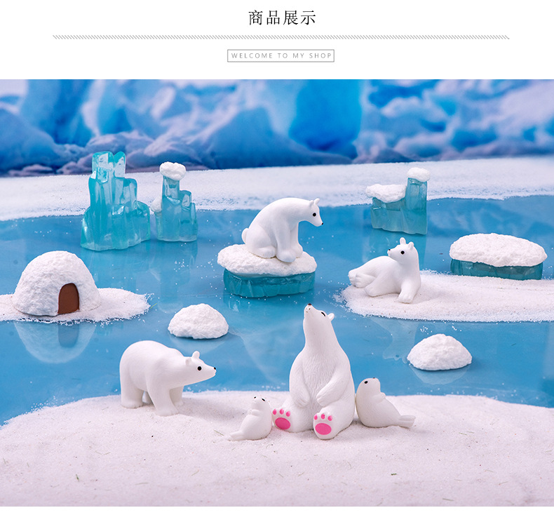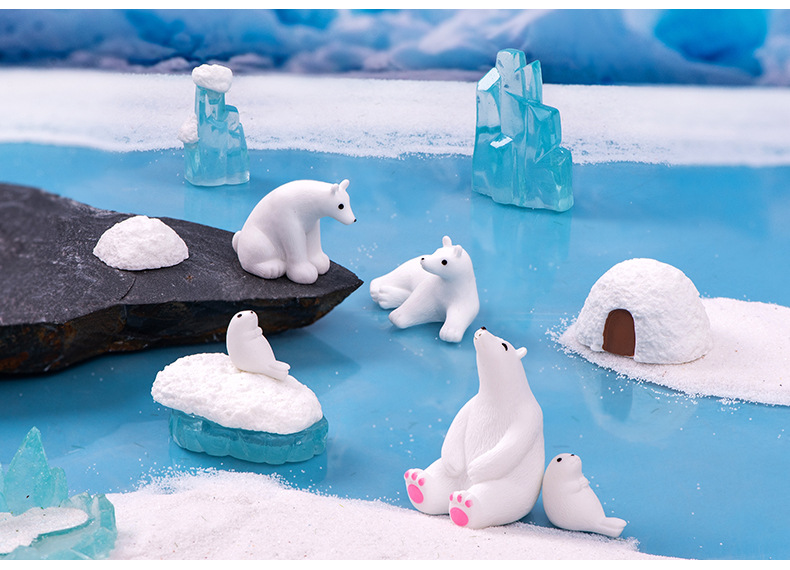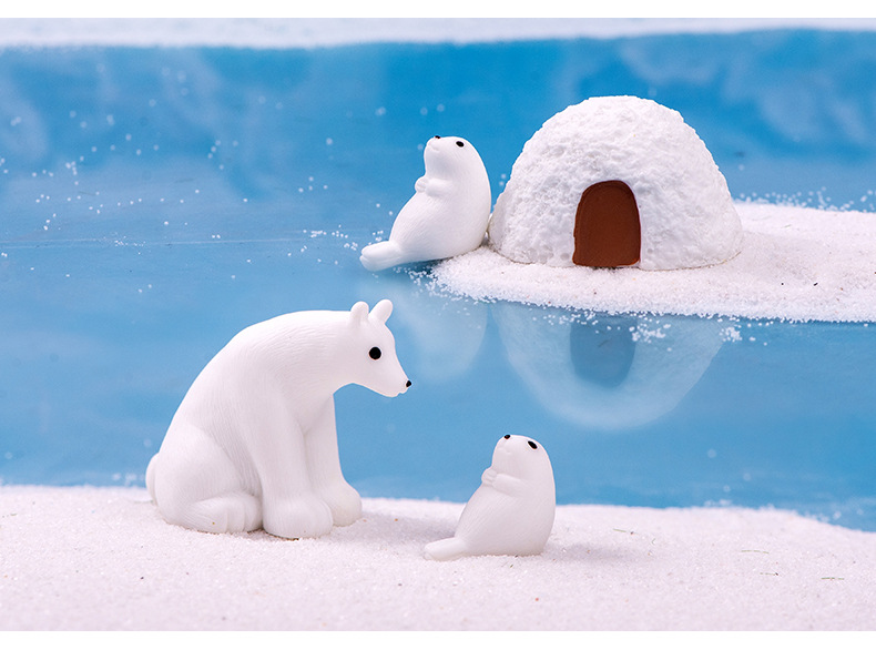 마이크로 풍경 창조적 인 귀여운 빙하 북극곰 인감 인형 장식품 DIY 장식 데스크탑 자동차 작은 장식품