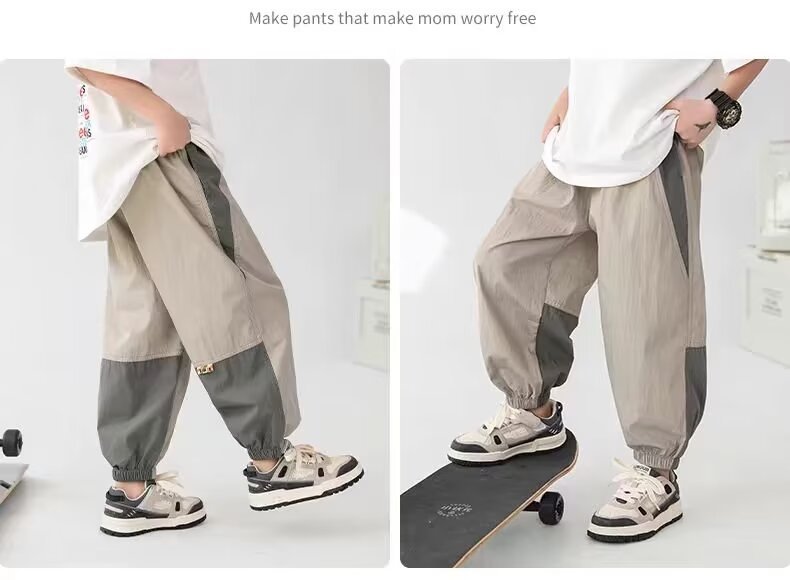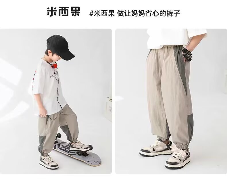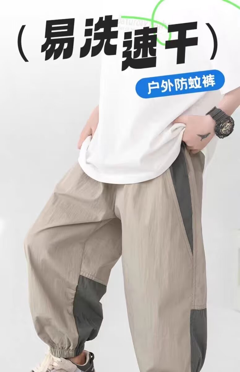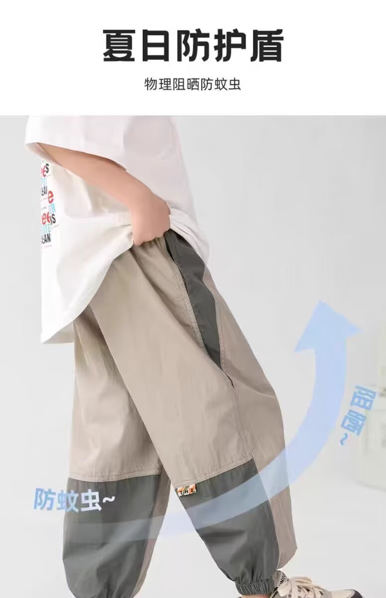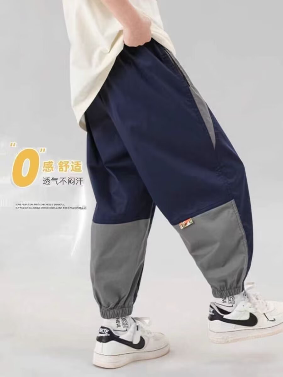 소년 캐주얼 모기 방지 바지 여름 새 색상 분할 스포츠 바지 2024 10 대 한국 스타일 여름 트렌디 한 발목 바지스토어 가기