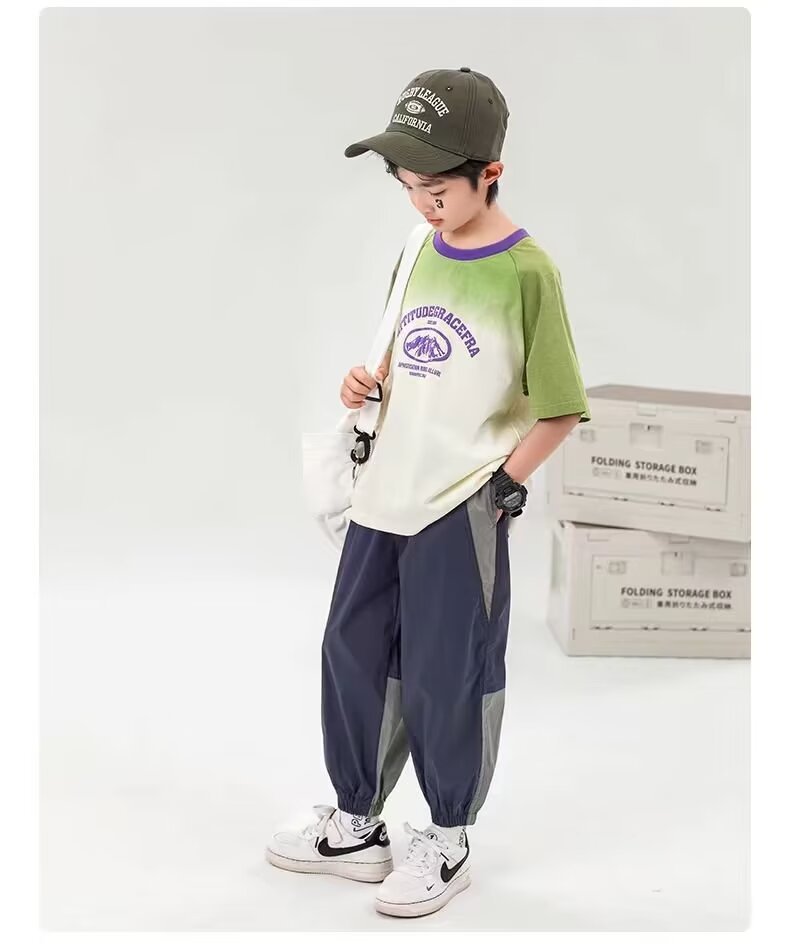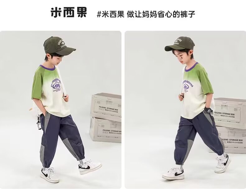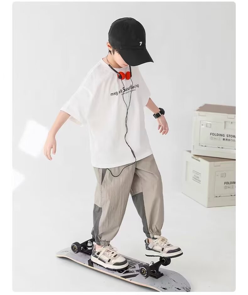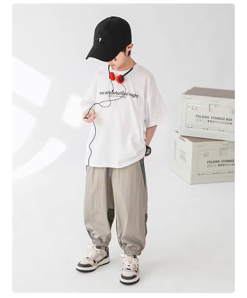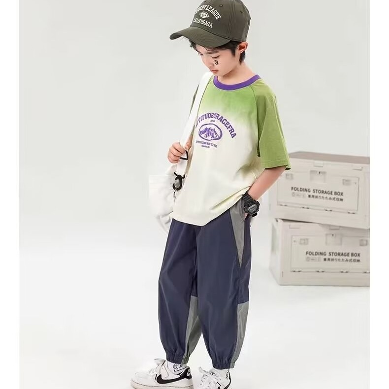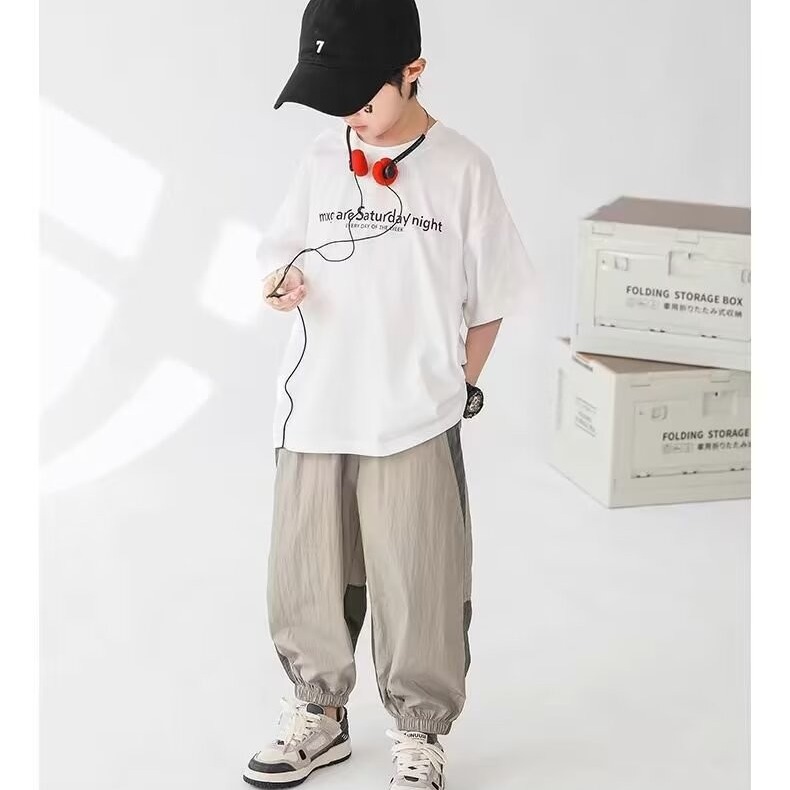 소년 캐주얼 모기 방지 바지 여름 새 색상 분할 스포츠 바지 2024 10 대 한국 스타일 여름 트렌디 한 발목 바지스토어 가기