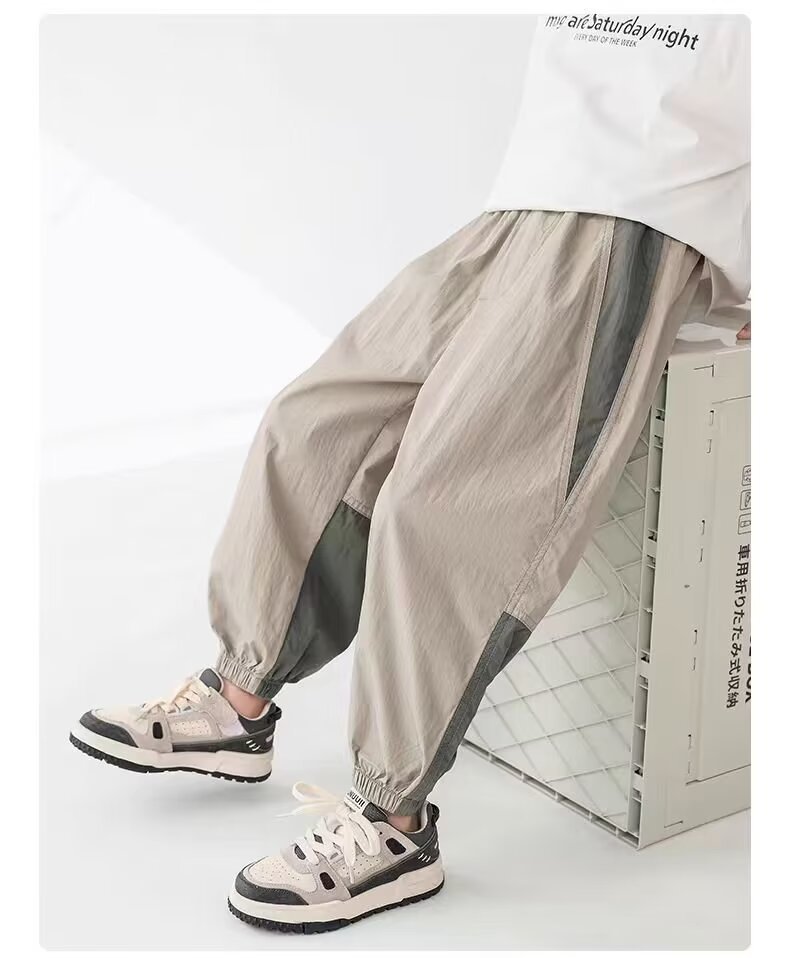 소년 캐주얼 모기 방지 바지 여름 새 색상 분할 스포츠 바지 2024 10 대 한국 스타일 여름 트렌디 한 발목 바지