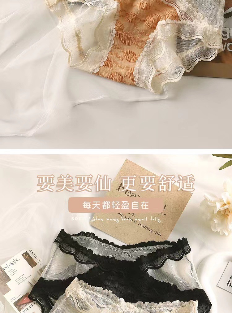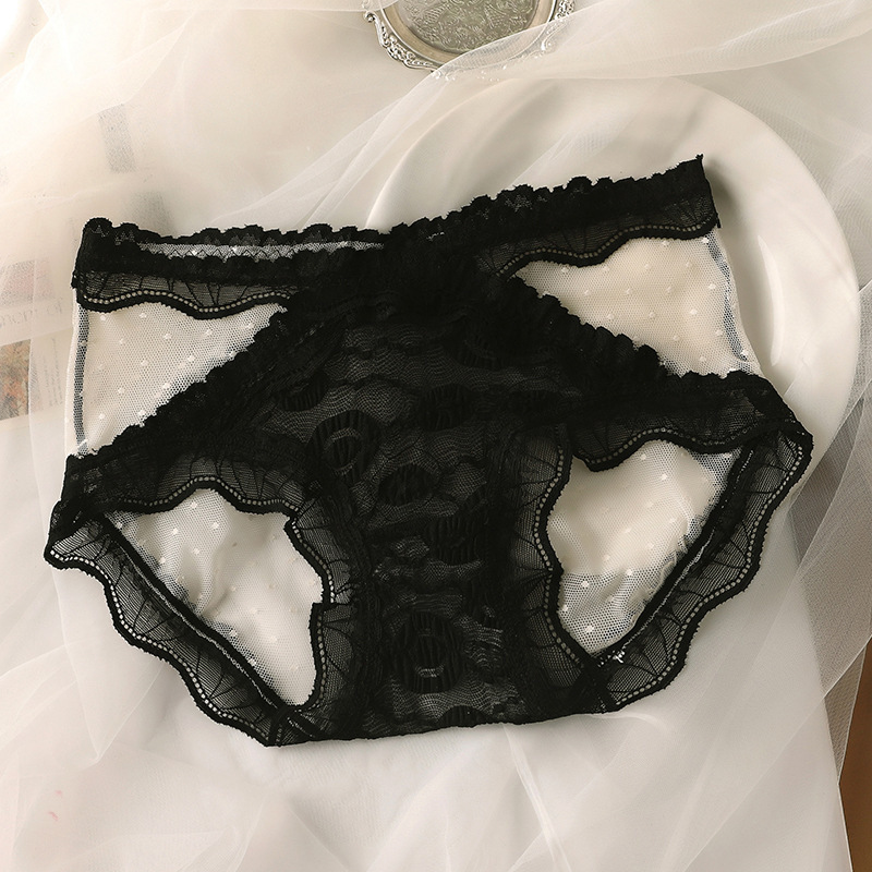 여름 일본식 순수 스타일 섹시한 반투명 레이스 속옷 중저 허리 통기성 순면 바닥 달콤한 소녀 속옷
