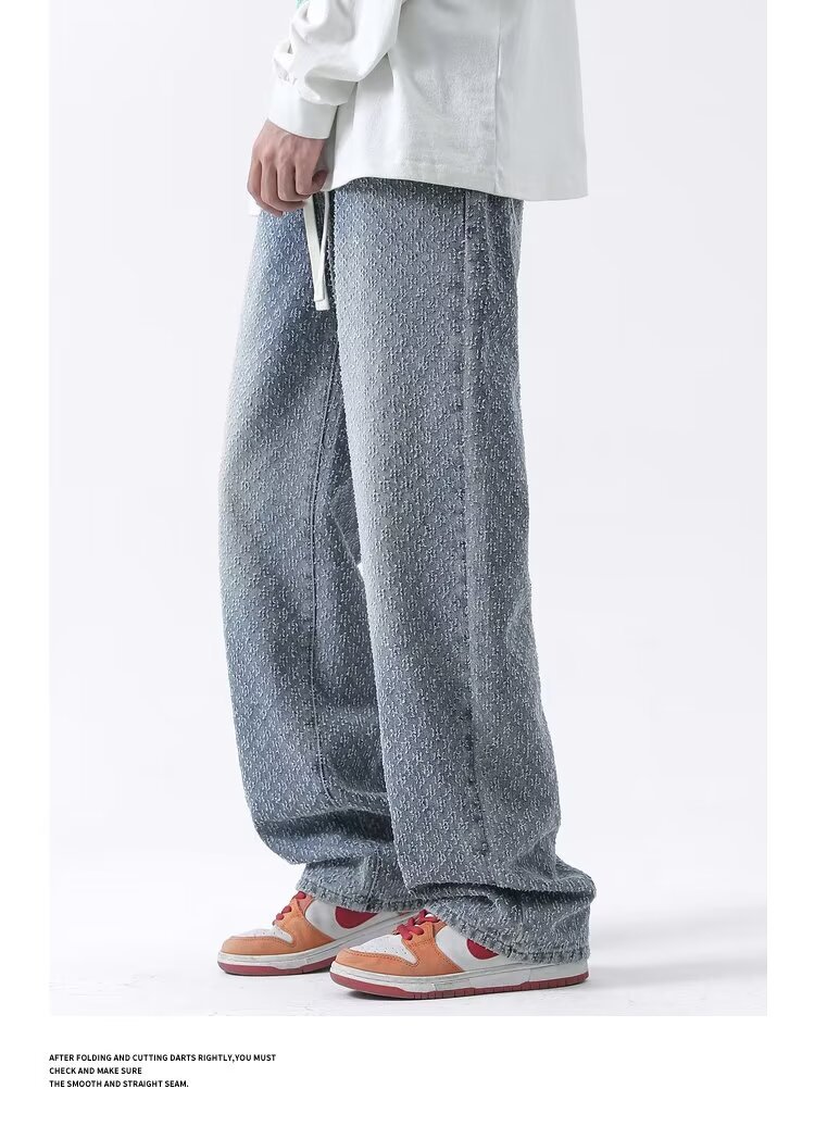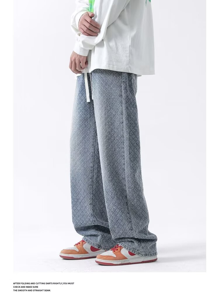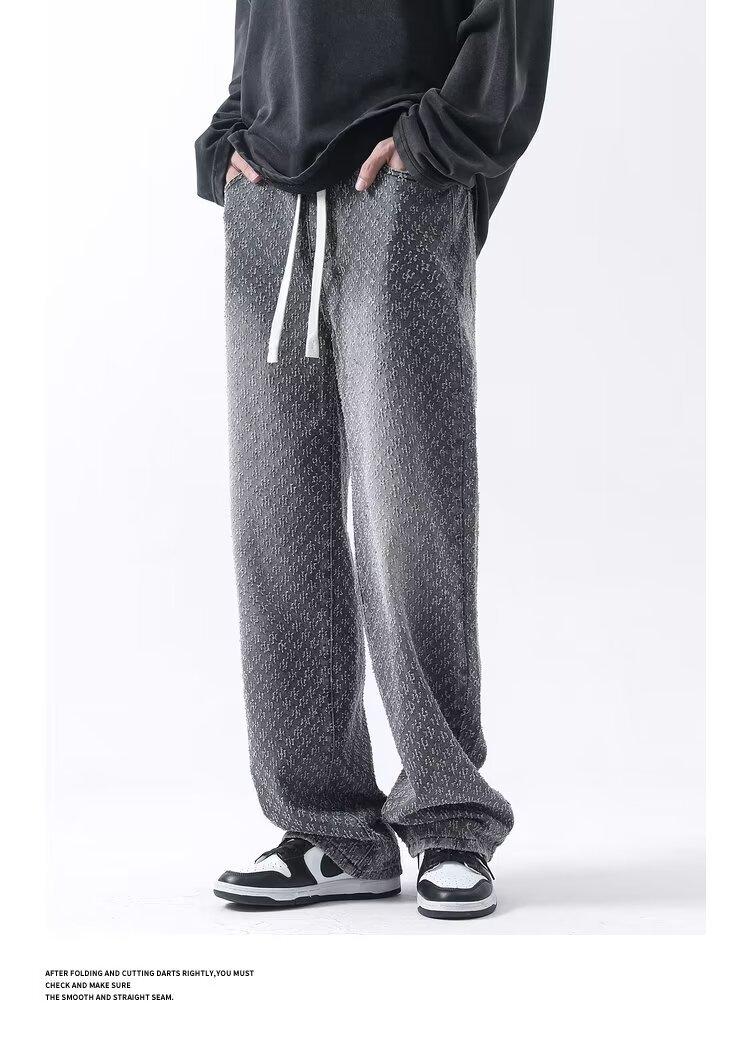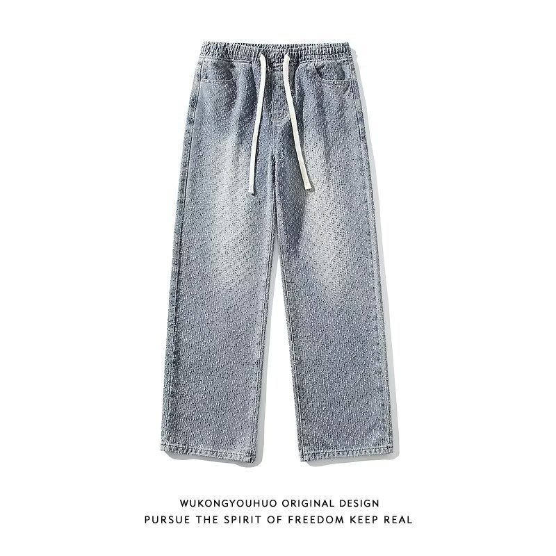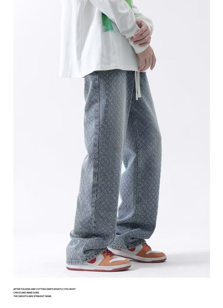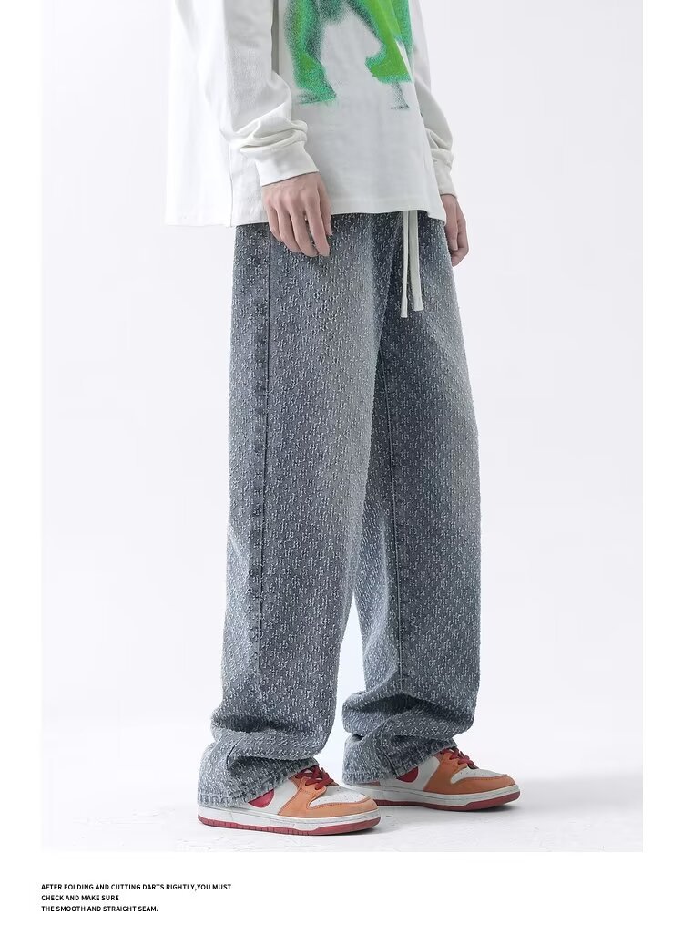 유럽과 미국의 힙합 자카드 탄성 허리 스트레이트 청바지 남성 2024 패션 브랜드 느슨한 넓은 다리 캐주얼 다재다능한 긴 바지스토어 가기