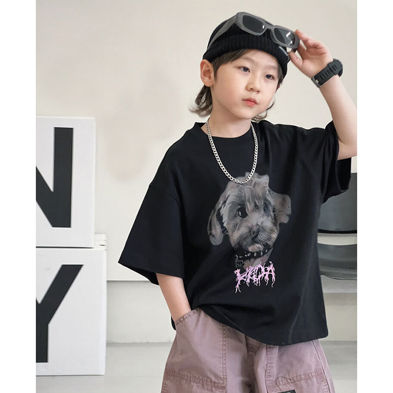 카테고리 A 퓨어 코튼 반팔 웨스턴 스타일 미드 빅 어린이 트렌디 브랜드 반팔 어린이 아기의 둥근 목 루즈 티셔츠 탑 트렌디스토어 가기